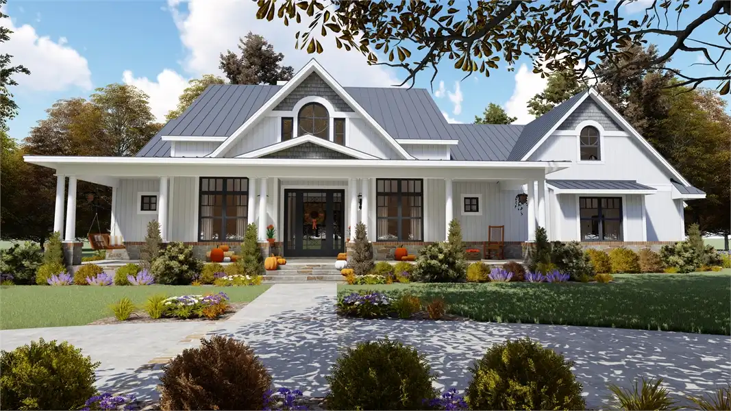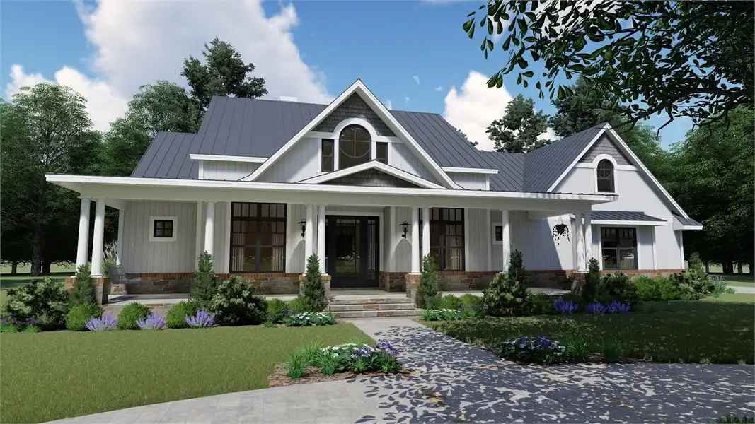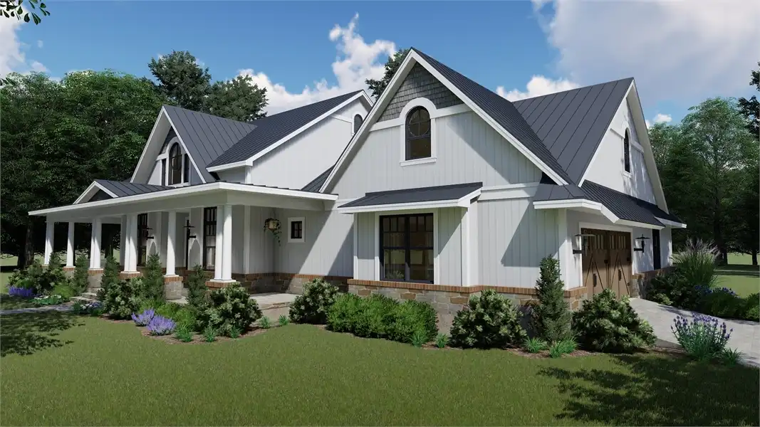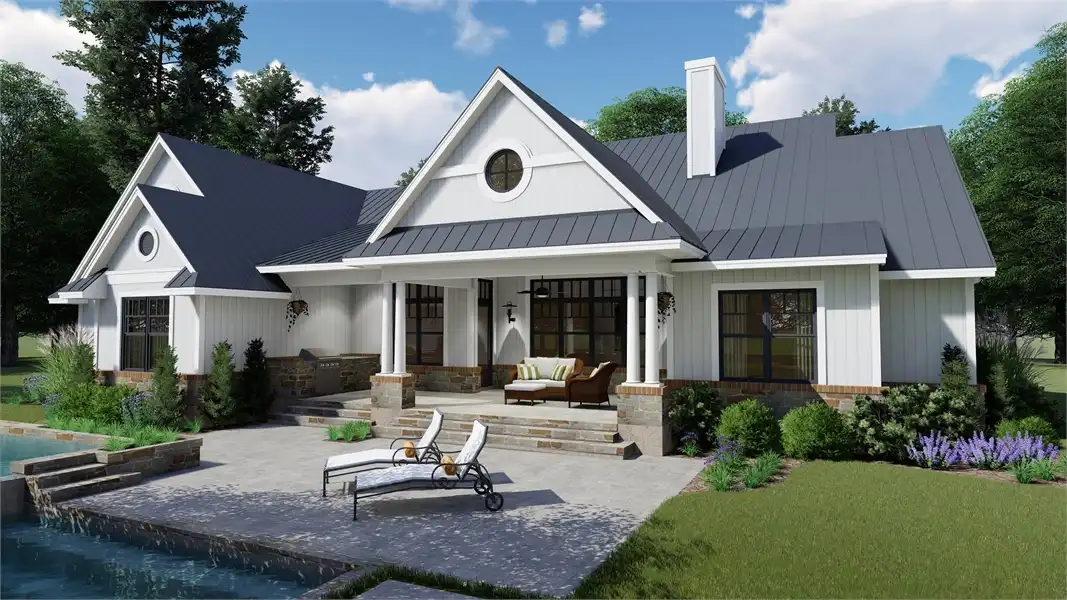 A nostalgic veranda and a breezy lanai promote outdoor living for this country-style house plan with three bedrooms, 2.5 baths and 2,787 square feet, plus bonus space on the upper level. A fireplace warms the central family room in this home plan, perfect for entertaining. The open kitchen boasts a sizable island as it offers meal service to the bright breakfast nook and the quiet dining room. Note the useful pantry and butler's pantry. How about inviting neighbors over for a barbecue on the rear lanai? At day's end, retire to the master suite, which has lanai access. The private bath includes a garden tub, a separate shower and dual sinks. The large walk-in closet keeps your clothes organized. Two more bedrooms with walk-in closets share a split bath. Builders point out the secluded study in this home design, which could serve as a den or home office. The bonus space could accommodate overnight guests.