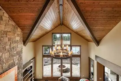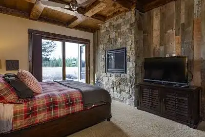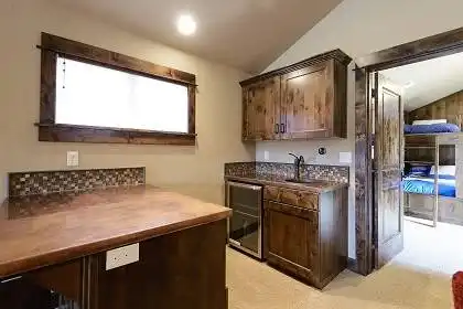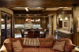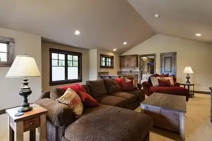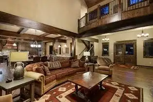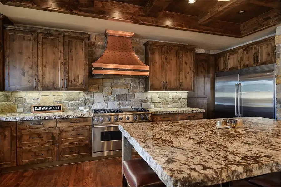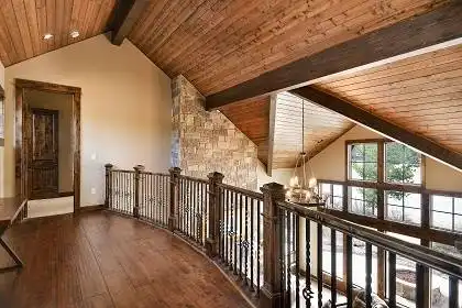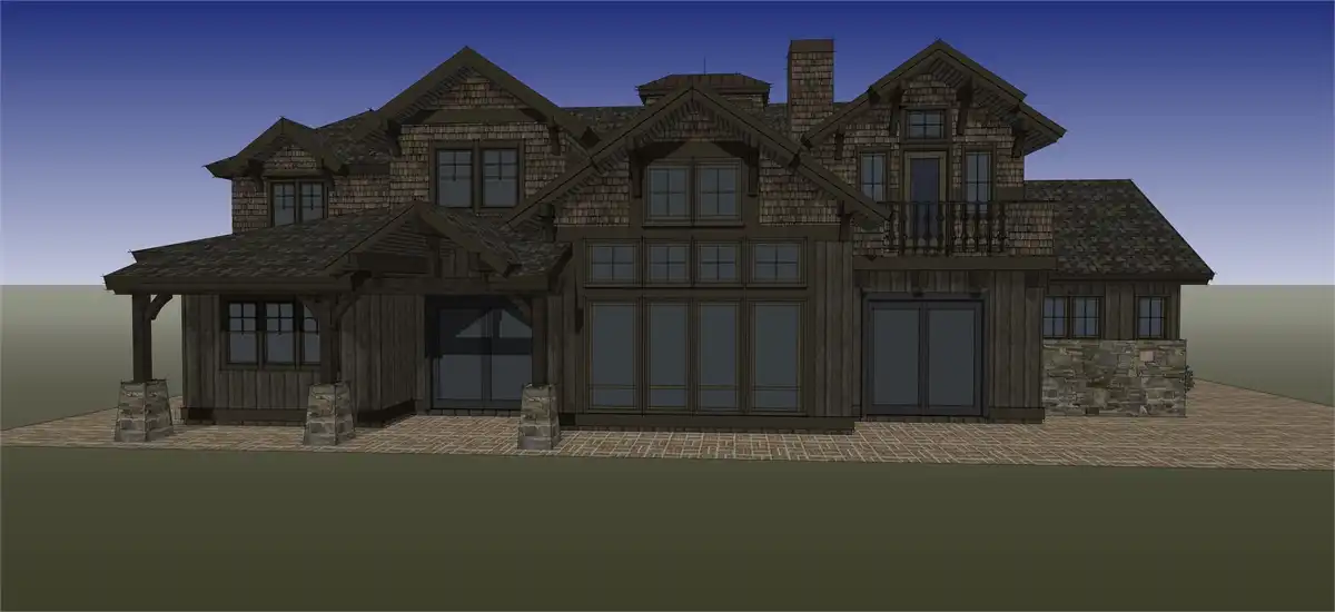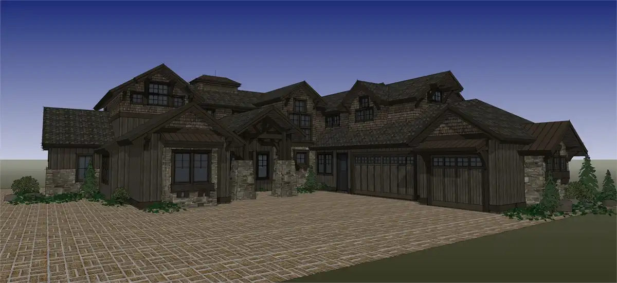 With a luxury 4,964 square feet of living area, plus five bedrooms and 5.5 baths, this beautiful lake style house plan is embellished with multiple gables. Welcome visitors in the large foyer of this home plan, and then show them to the great room, where a high ceiling soars above. Don't overlook the warming fireplace and the gorgeous views of the lake. The island kitchen boasts snack space and a good-sized pantry. Sliding glass doors open from the bright dining room to a rear porch. The larger master bedroom offers outdoor access, and lies near an exercise room and den. Refresh yourself in the personal bath, with its garden tub, separate shower, double vanities and window seat. Organize your wardrobe in the fantastic walk-in closet. A second master suite on this level of the home design would be perfect for guests or in-laws. On the upper floor, the children will appreciate two additional master suites. Note the view into the great room below. Builders point out the fun bunk room. Enjoy games in the bonus room, with its handy kitchenette.