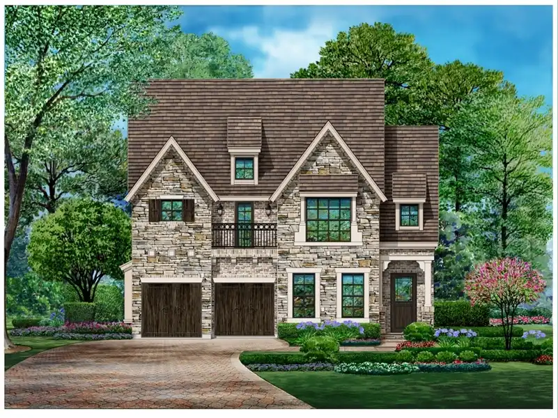 A peaked roofline, beautifully ornate windows, and tasteful touches of stone and wood, this 2-story European plan is full of style and charm. Inside, a 3,603 square foot layout offers plenty to enjoy, including 3 bedrooms. This is highlighted by the first floor master and its impressive spa-style bath and walk-in closet. The first floor also has a 2-car garage, private study, and open kitchen, breakfast nook, and vaulted family room. Upstairs has all of the auxiliary bedrooms, as well as a game room and plenty of dedicated storage areas to keep you home clutter-free.