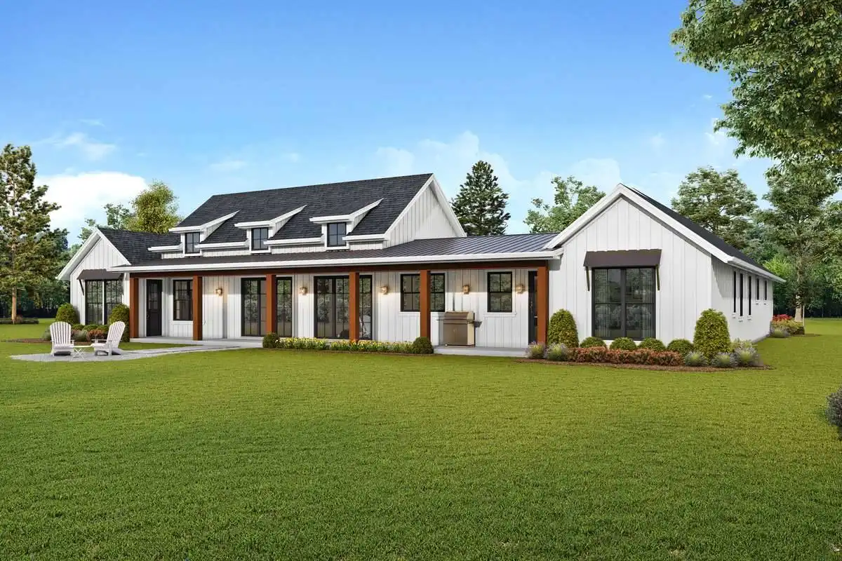 Front and rear porches lend a country feel to this graceful house plan, with three bedrooms, 2.5 baths and 2,495 square feet of living space. You'll love the open floor plan in this home plan, with a vaulted living and dining room and a fabulous fireplace. Expand any gathering to the breezy rear porch. The gourmet kitchen boasts a sizable island and a handy pantry. Don't forget the option of serving some meals on the rear porch. Retire to the vaulted master bedroom at day's end; note the walk-in closet and direct access to a porch. In the private bath, you'll find a garden tub, a tile shower and a dual-sink vanity. Another full bath is conveniently located between two additional bedrooms in this home design. Our customers love the vaulted office, which could serve as a cozy den.