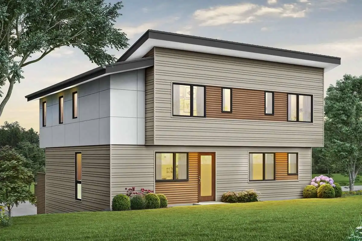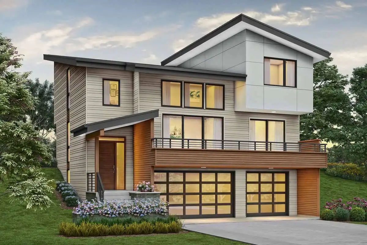 This sleek modern plan maximizes space in a reduced footprint, making it great for a small or confined lot. Beginning with a drive-under garage, this home focuses on building vertically instead of horizontally, resulting in an efficient home, with 2,411 square feet of wonderful views. Once you park in the 3-car drive-under garage, ascend the staircase in to the main living area. Here you will love the open concept and its flow that finds the great room and dining room joining with a spacious island kitchen. Both the dining and great room feature sliding glass doors which open on to a spacious front deck, great for watching the sunrise with a cup of coffee in hand. This level also provides you with an office suite and half bathroom, great for productive days spent getting extra work done. The third and final level is home to an open-air walkway that looks down on the great room below, before entering in to three separate bedrooms. Two of these bedrooms have a shared jack and jill bathroom with individual toilets, while the final, the master suite, has its own private bathroom and amazing walk-in closet, resulting in a space that is totally focused on you and your comfort, 365 days a year.