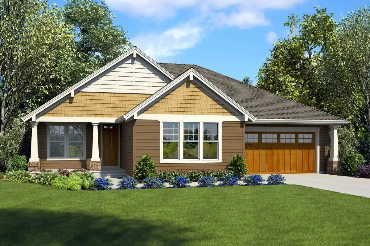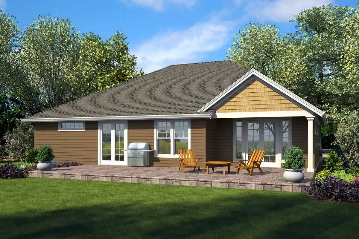 This Craftsman plan is perfect for a wide variety of lots, packing away a surprising amount of space and offerings. Beyond the front door that is found nestled away beneath a covered porch, you enter in to the foyer of this 2,137 square foot home. To your immediate right you’ll find a multi-functional room that can serve as a den or even another bedroom if necessary. Beyond the entry, you enter in to a spacious open great room that joins with a gourmet kitchen and dining nook. Additionally, dual French doors swing open off of the great room and provide access to the covered rear porch and patio. Back beyond the foyer you will discover perhaps this home’s most impressive secret, it has two full master suites! The first and closest features its own full bathroom, as well as dual closets. The second master is at the rear of the home and provides an even larger bedroom space, as well as a spacious bathroom and walk-in closet. For homeowners who love to entertain and want to have an extra bit of luxury in their homes, look no further than this practical plan.