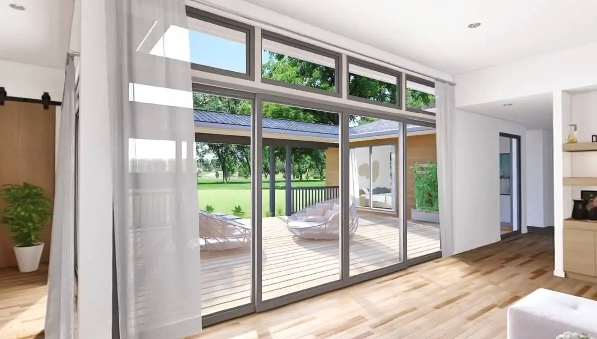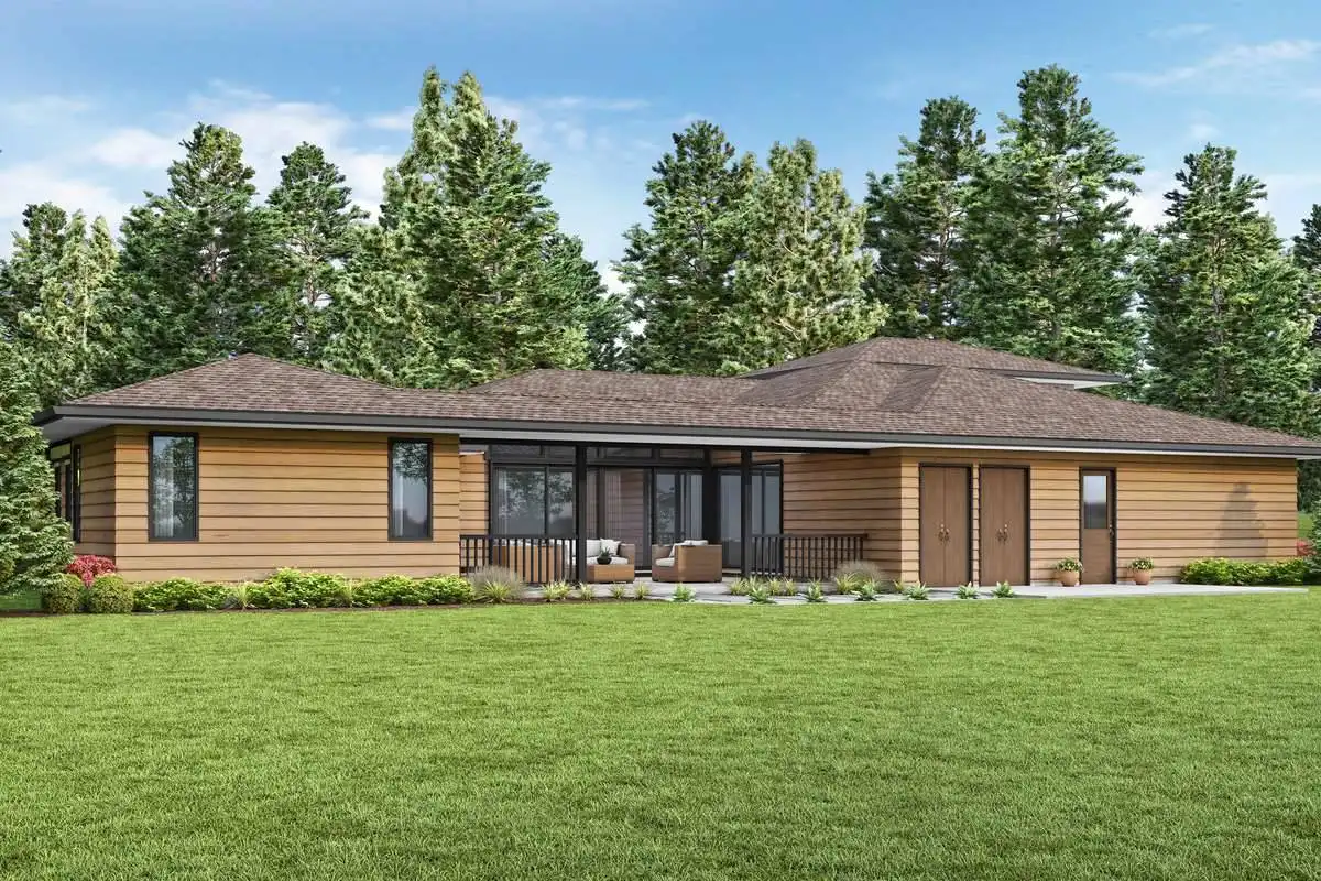 With 2,947 square feet, as well as 4-bedrooms and 3.5 bathrooms, this home is actually quite deep, even boasting a private apartment/2-story in-law suite. The apartment is accessible from the front of the home, with its own private entrance. Inside you’ll find a full eat-in kitchen and living rooms, as well as a second floor bedroom and bathroom. The main house is also accessible from the front and has its own garage. Past the foyer you’ll enter in to the single-story ranch style layout via the open concept dining room, kitchen and living room. A nearby office provides privacy for extra productivity. Past the living room and its glass doors that overlook the spacious courtyard, you find yourself down a hallway that houses two secondary bedrooms and a spacious master suite. Relax in the large bathroom before getting ready in the walk-in closet and wardrobe. And when the day is done, enjoy a nice evening sunset on the back porch.