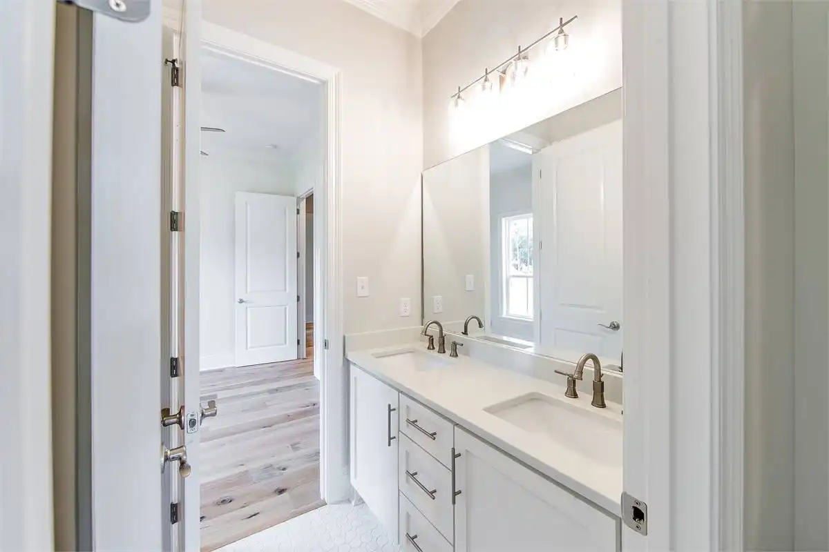 Gorgeous Southern charm and unmatched accessibility join together to make this stunning 4 bedroom family home. A 2,350 square foot layout is totally on a single floor, meaning that this plan is great for people of all ages and abilities. Plus, it has convenient features such as a 2-car rear garage, walk-in closets in every bedroom, and a fully open main living space. This includes a chef-inspired kitchen along with a walk-in pantry, as well as the nearby vaulted family room and covered back deck, complete with its own full barbecue kitchen. Notice the master and its large and relaxing spa bath, along with an impressively large closet. The other bedrooms sit opposite the master, including a full guest suite, a perfect and private offering.