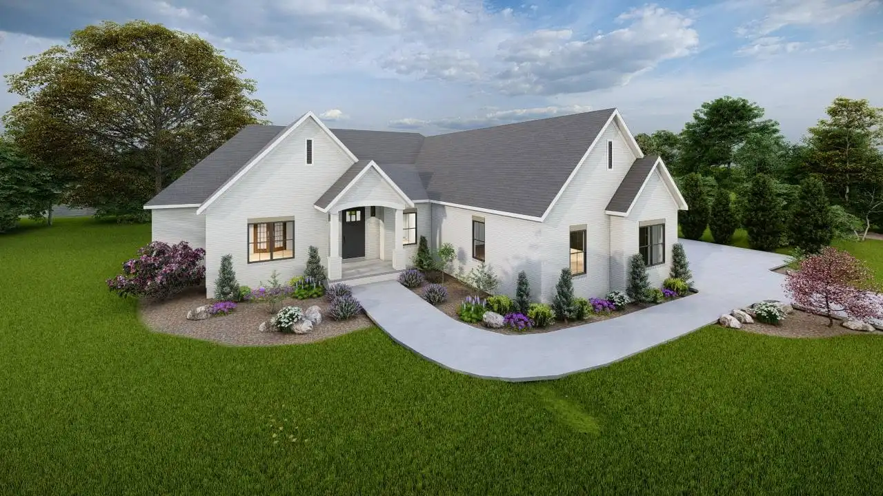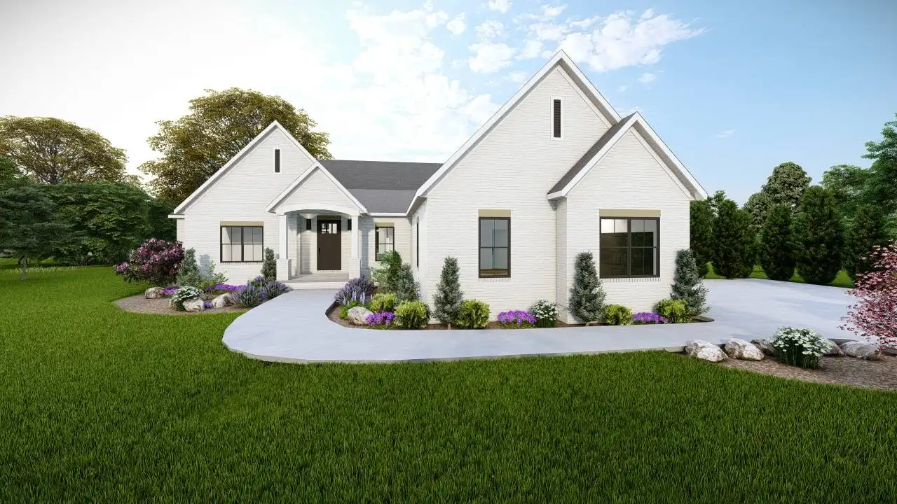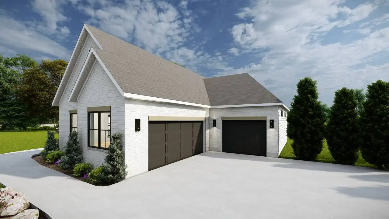 House Plan 7257 is a wonderful country-style ranch with plenty of room for a family. In addition to 2,519 square feet of living space, you'll find garage parking for three between the front side-entry and side front-entry garage bays! Inside, the heart of the home is comprised of the great room, with a high ceiling and fireplace in the living area and an island kitchen overlooking the living and dining spaces. You can also expand out into the fresh air with the covered back porch! Three bedrooms and two baths are split around this--the primary suite has a four-piece bath while the secondary bedrooms share a three-piece hall bath. There's also a den/flex room and an owner's entry/mudroom that connects to the laundry, powder room, and pantry!
