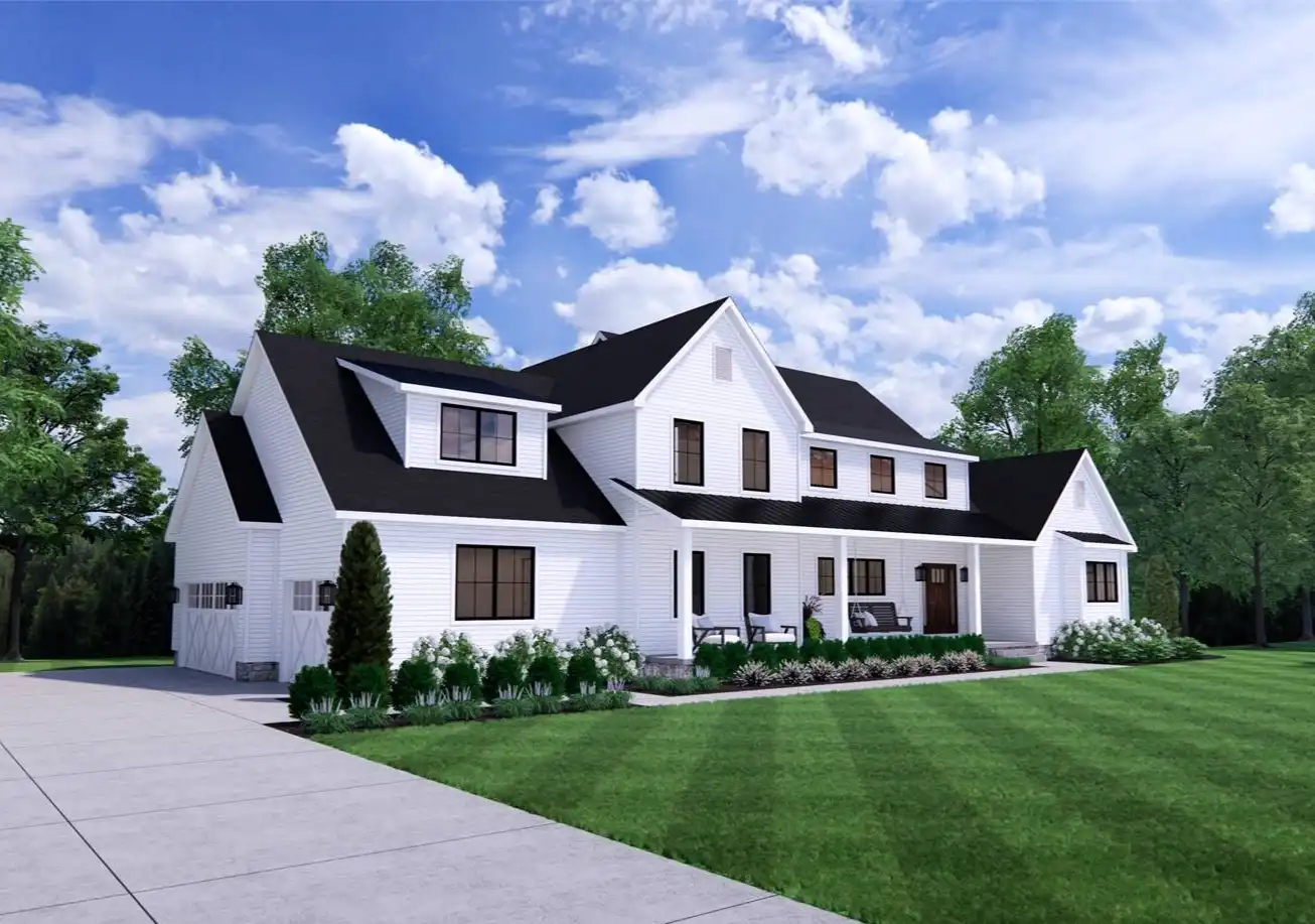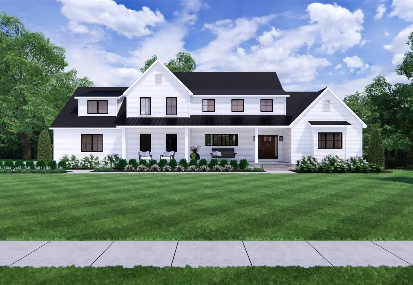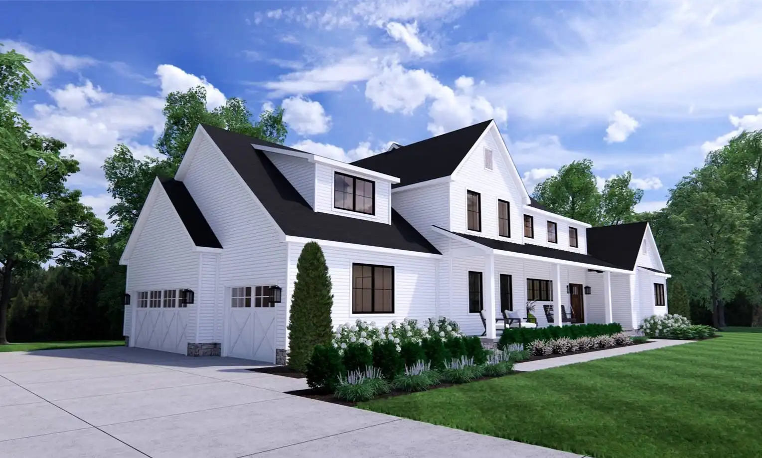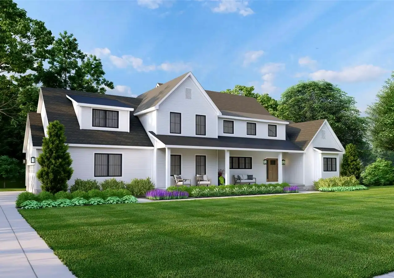 Need a great two-story farmhouse for a family and a lot that's wider than it is deep? Feast your eyes on House Plan 7273, an amazing design with 2,558 square feet, three bedrooms, and two-and-a-half bathrooms. The main level includes open-concept living with a U-shaped kitchen overlooking the vaulted living/dining space with skylights, the five-piece primary suite with two walk-in closets, and a large mudroom that connects to the three-car side-entry garage as well as the rear entry. Head upstairs and you'll find the final two bedrooms and a four-piece hall bath to share. There are also two unfinished spaces you can do with what you like!