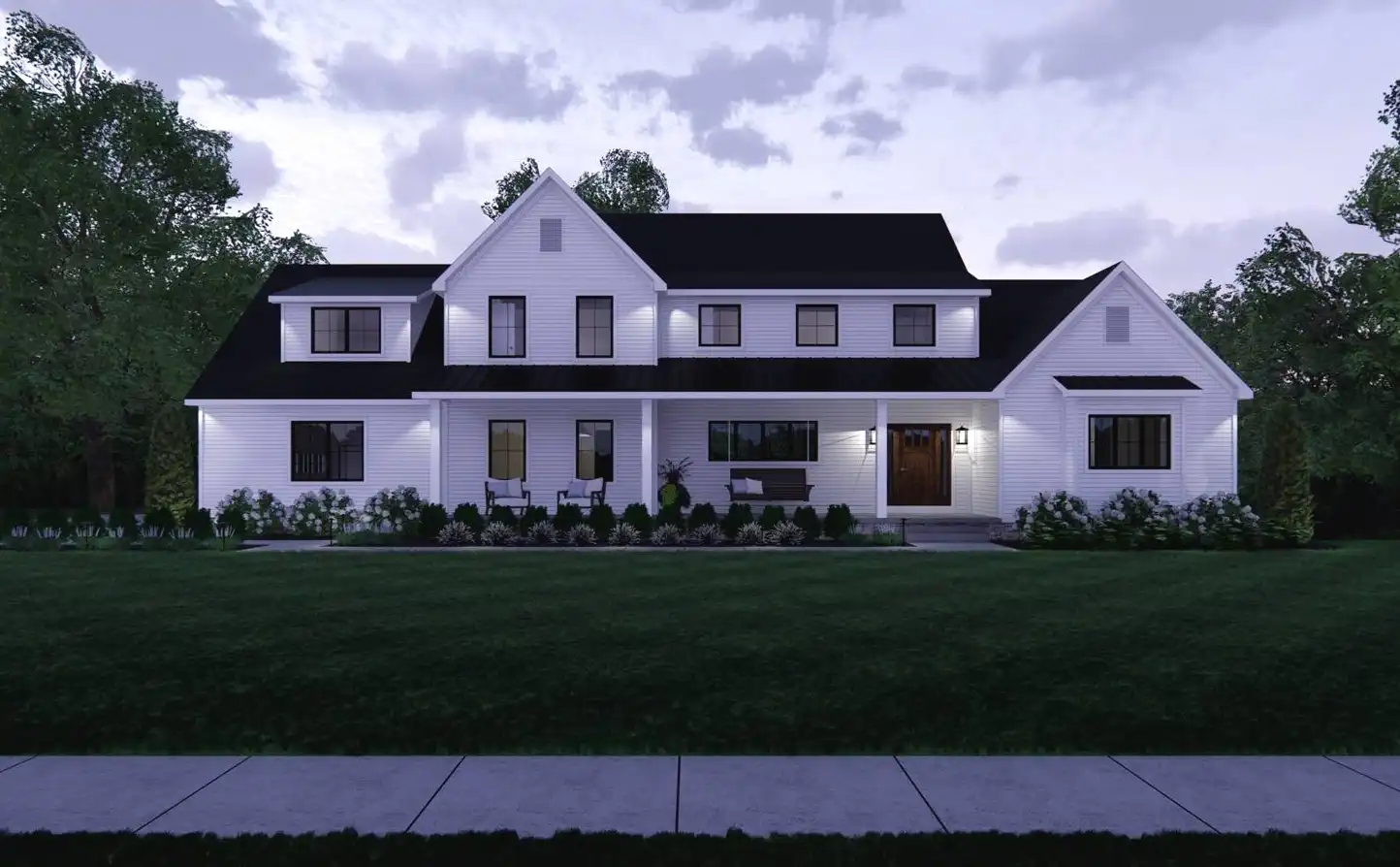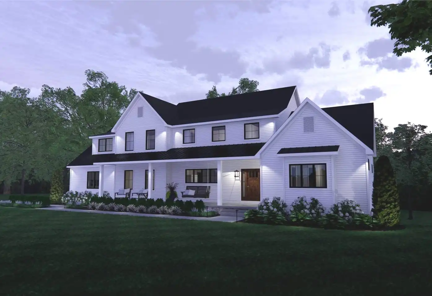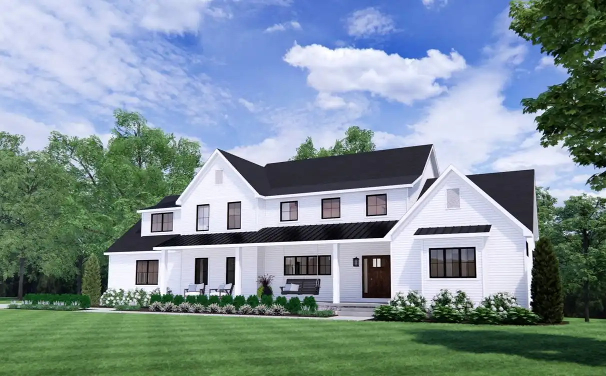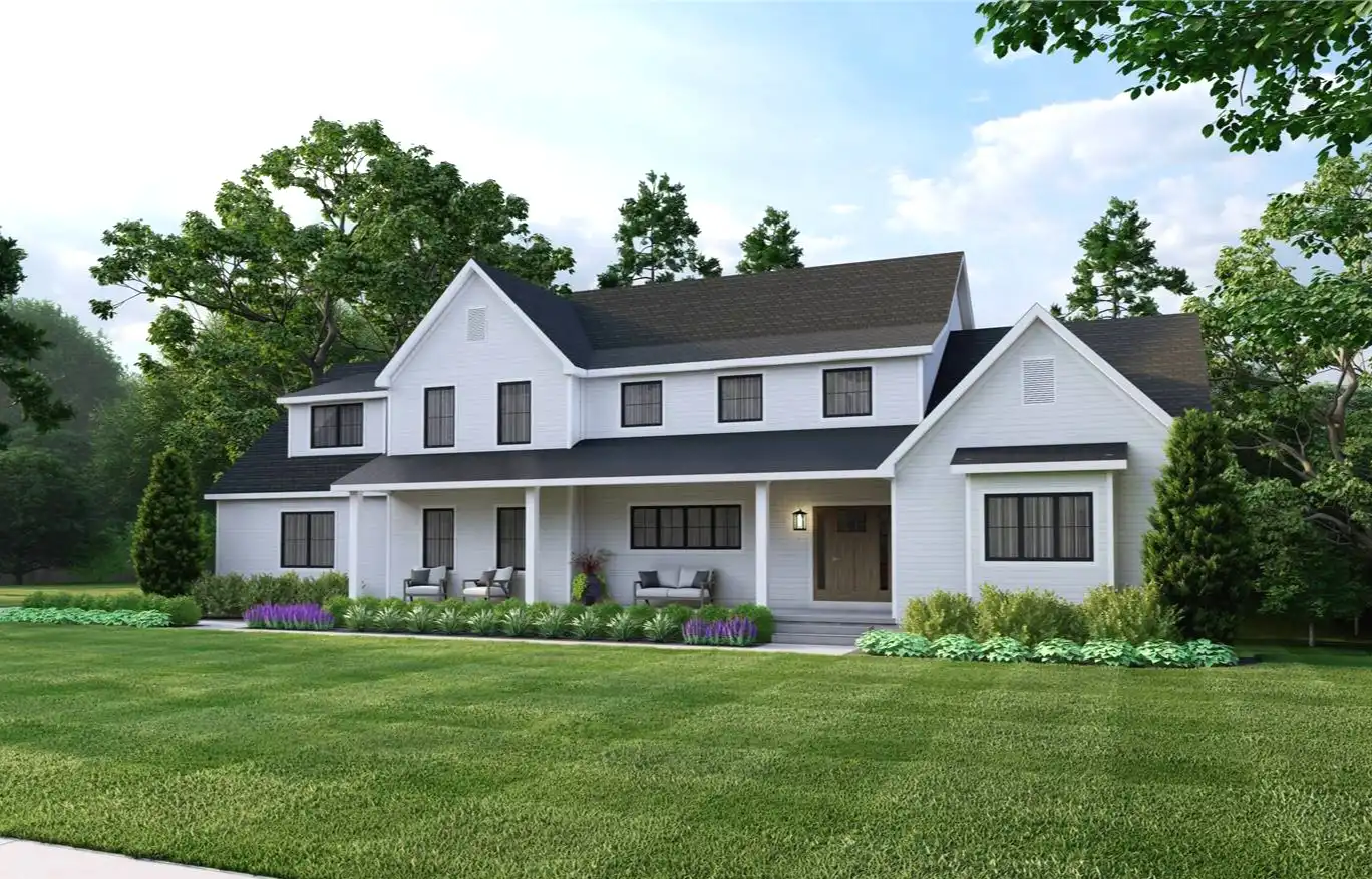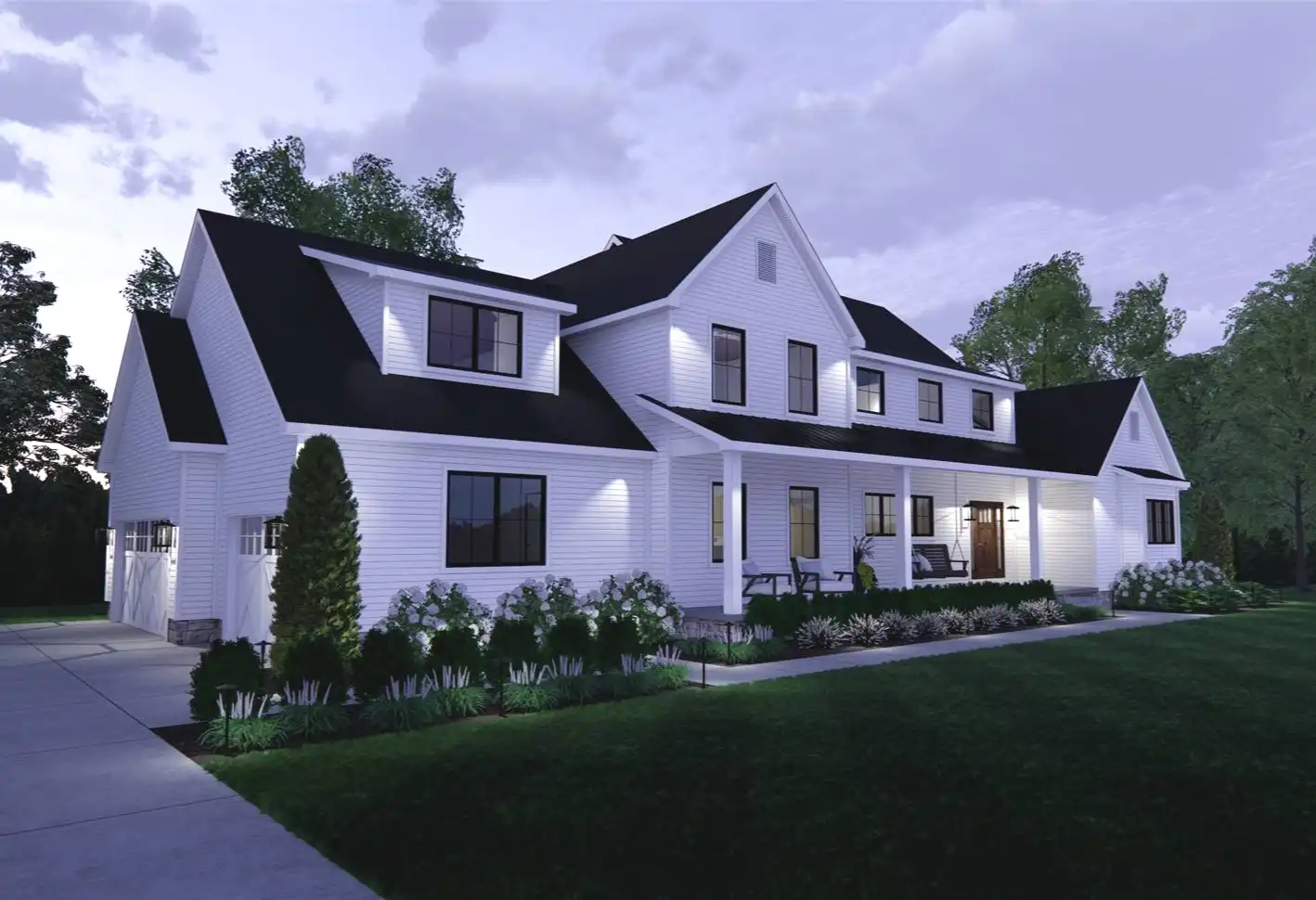 Need a great two-story farmhouse for a family and a lot that's wider than it is deep? Feast your eyes on House Plan 7273, an amazing design with 2,558 square feet, three bedrooms, and two-and-a-half bathrooms. The main level includes open-concept living with a U-shaped kitchen overlooking the vaulted living/dining space with skylights, the five-piece primary suite with two walk-in closets, and a large mudroom that connects to the three-car side-entry garage as well as the rear entry. Head upstairs and you'll find the final two bedrooms and a four-piece hall bath to share. There are also two unfinished spaces you can do with what you like!