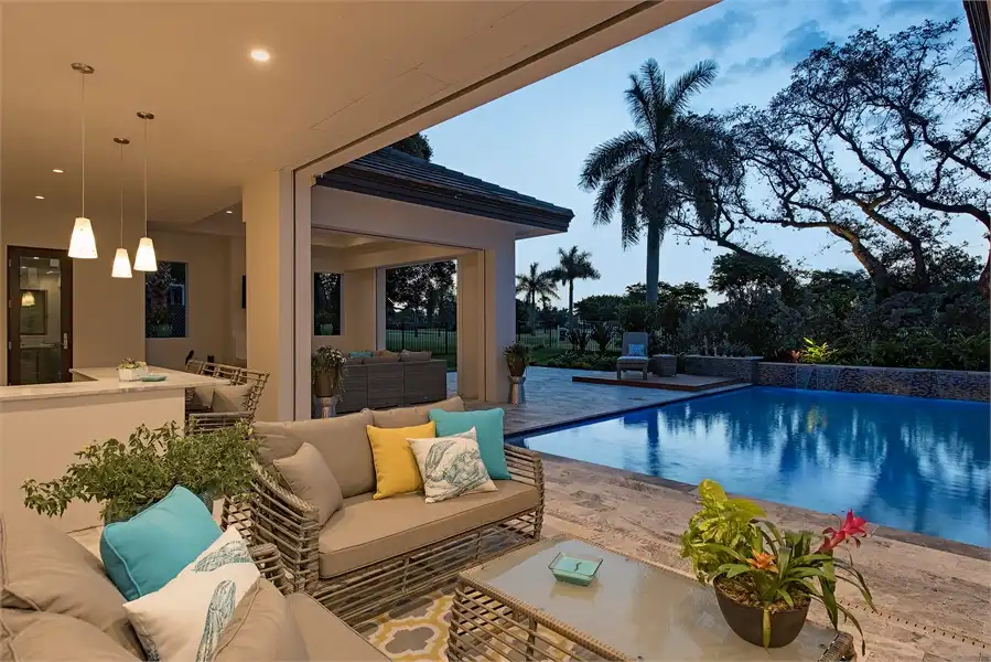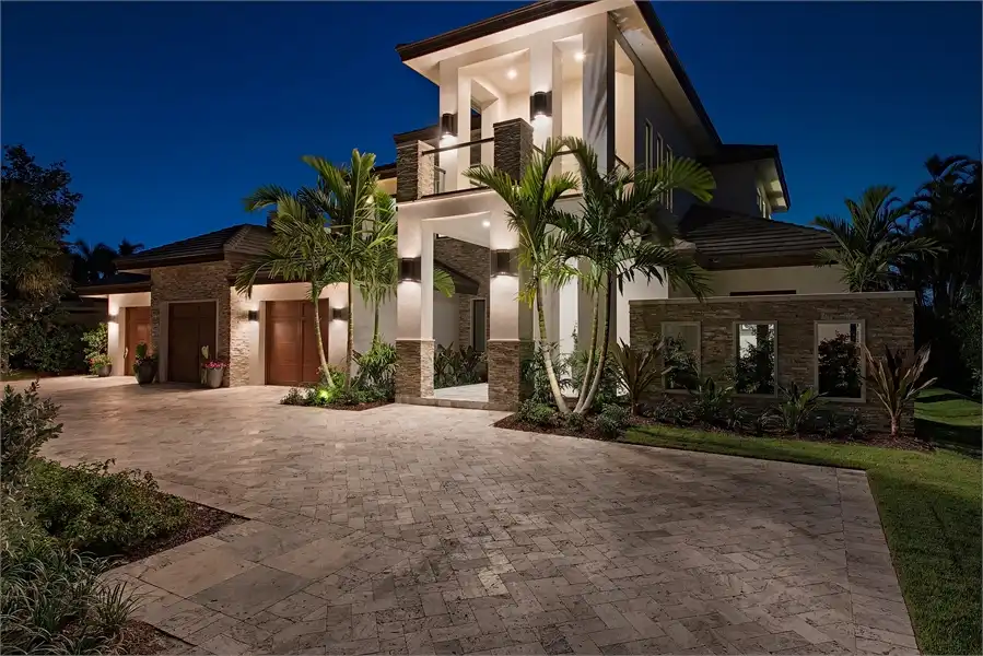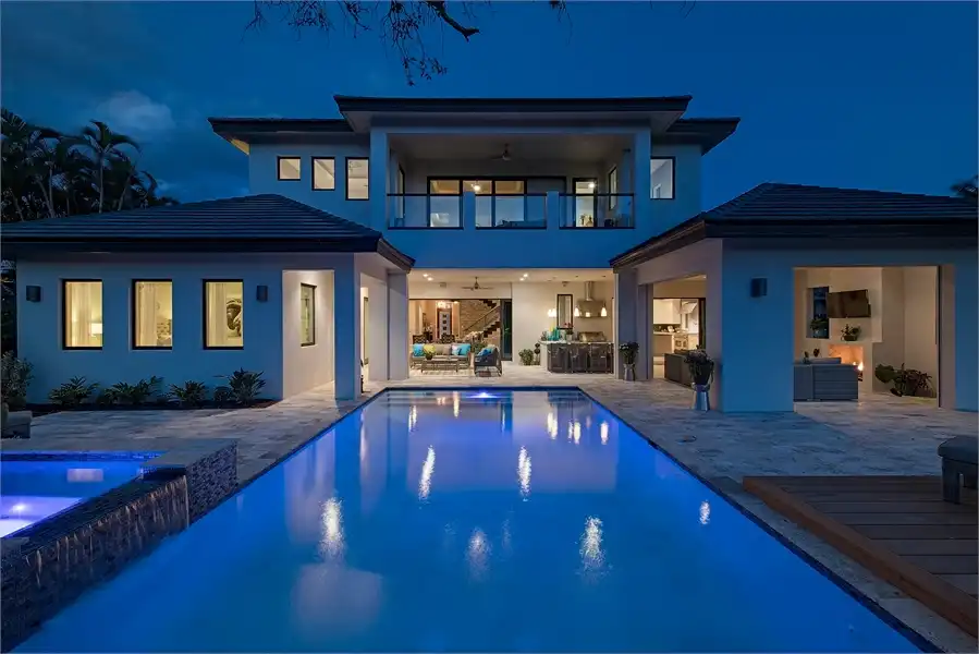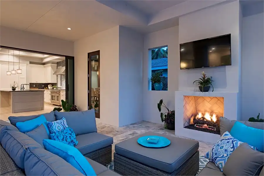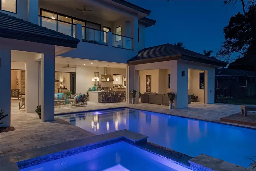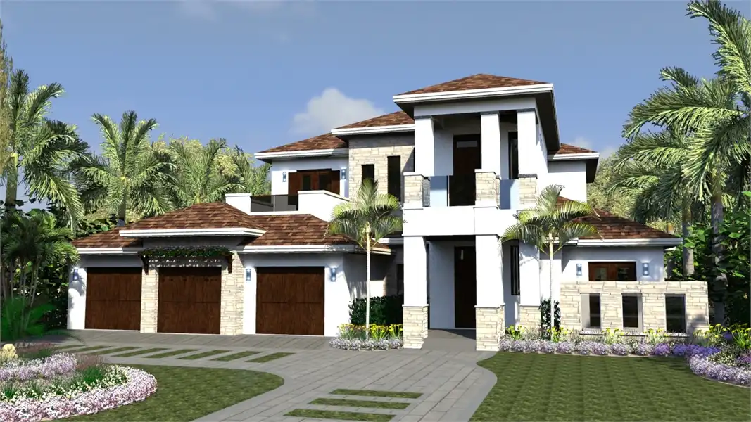 With a luxury 4,177 square feet of living space and massive columns, this contemporary-style house plan flaunts four bedrooms plus four full baths and two half-baths. Converse with friends in the large great room with fireplace in this home plan, then step out to the covered lanai for a breath of fresh air. The island kitchen boasts a snack area, a wet bar and a nearby pantry. You'll be proud to host a dinner party in the elegant dining room. The summer kitchen allows a warm-weather option: al fresco dining on the rear lanai. The refreshing pool area can be as fabulous as you make it. The peaceful master bedroom includes direct access to the lanai. A garden tub anchors the private bath, along with an enormous shower and a dual-sink vanity. Two walk-in closets keep your clothes organized. On the second level of this home design, you'll love the three guest suites, each with a personal bath and a walk-in closet, plus direct access to an outdoor relaxation space. The spacious lounge would be great for reading or homework. Builders point out the location of the study on the first level, allowing you to watch for arriving clients.