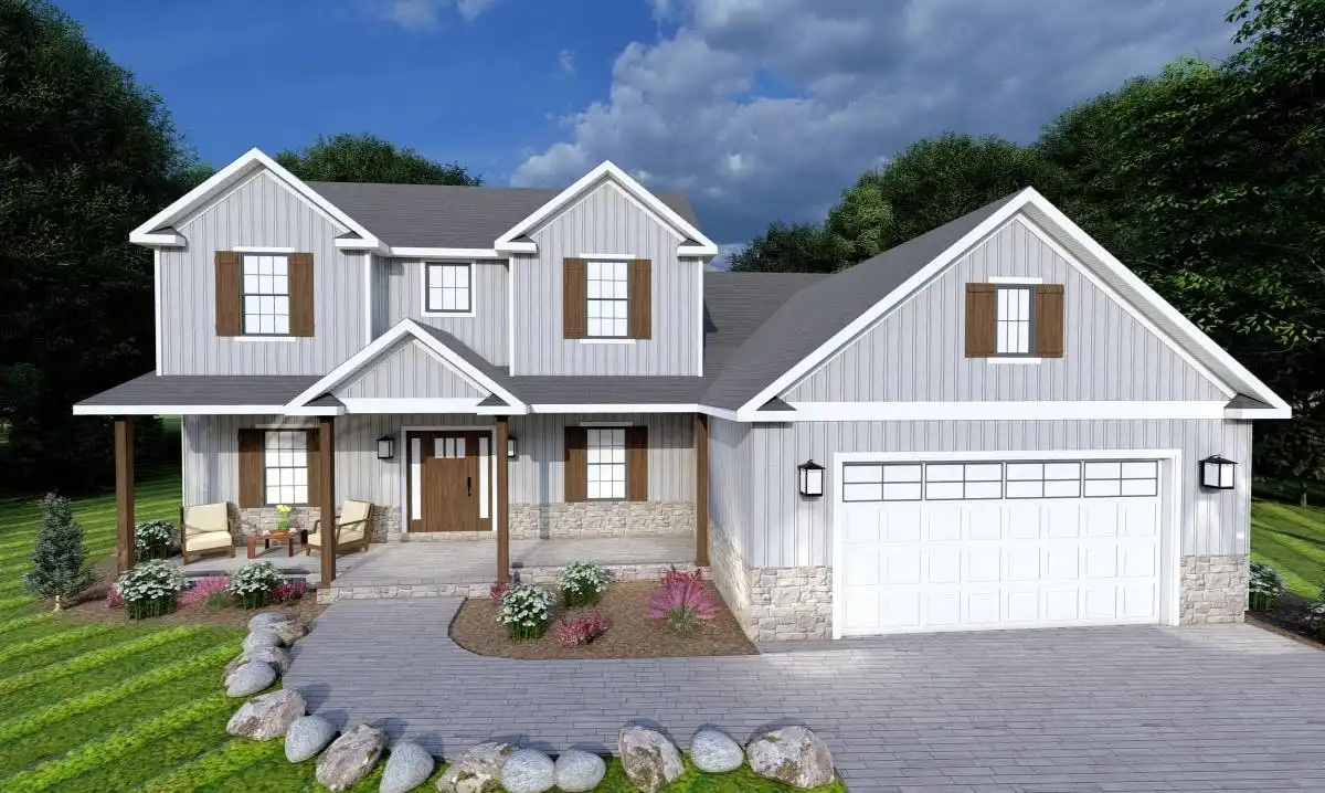 With 2,207 square feet and three split bedrooms, House Plan 7291 is the perfect home for today's families! The main level features the open concept living and primary suite. Make sure to notice the unique mudroom that connects the garage entry to the foyer as well as the kitchen. It includes the laundry room and powder room, too. The staircase is in the middle of the house and has a bookcase on the landing before leading up to the loft, which connects to two bedrooms and a hall bath to share. With this layout, this home is great for families of all ages, and owners who want to age in place!