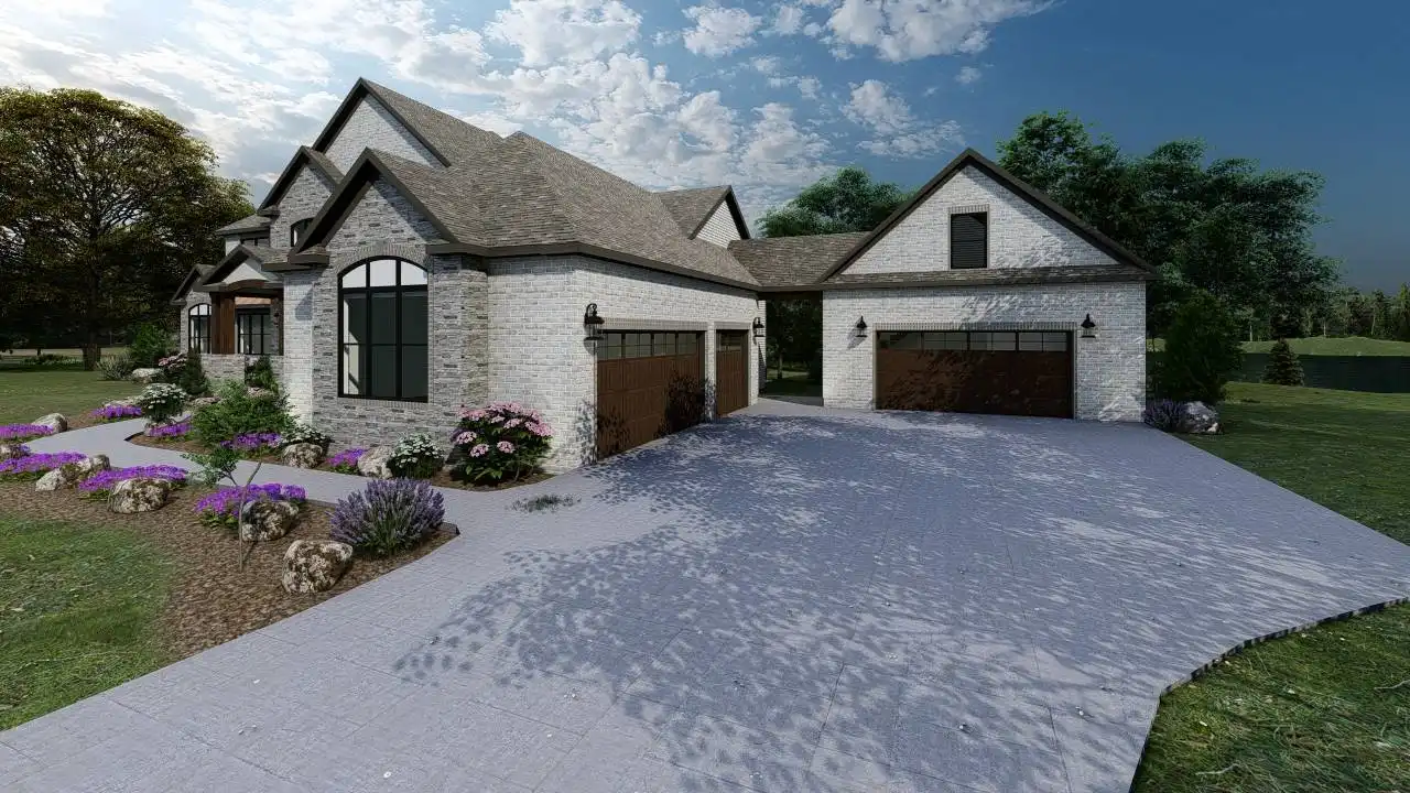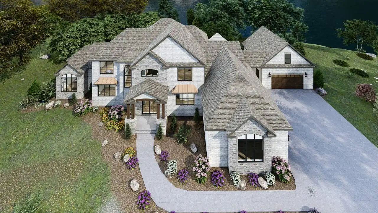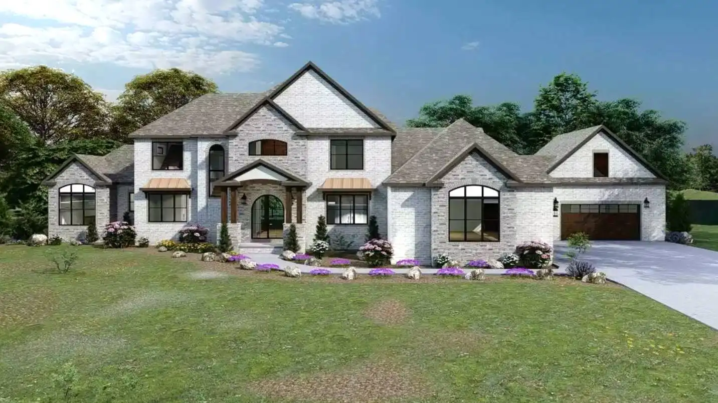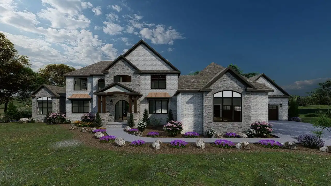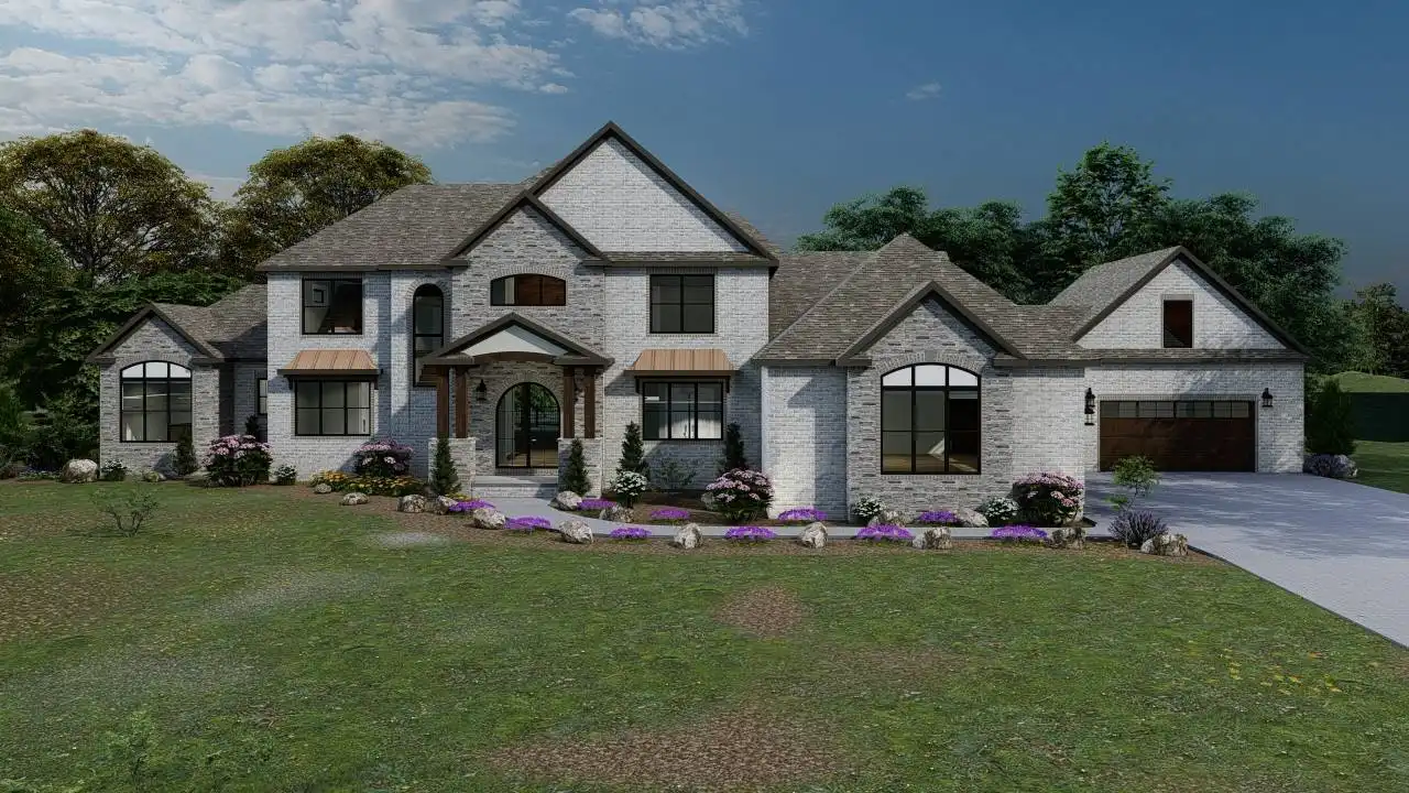 House Plan 7292 is a spacious and thoughtfully arranged two-story design offering 3,986 square feet, four bedrooms, three-and-a-half baths, and an impressive five-car garage. A large foyer creates a welcoming entry, with a front-facing office positioned for privacy and productivity. The main-level primary suite is located on the right side of the home and features a spa-like ensuite, an oversized walk-in closet, and convenient access to the laundry room for everyday ease. At the heart of the home, a dramatic great room with a cathedral ceiling provides an open and inviting gathering space, complete with direct access to a large rear deck for effortless indoor-outdoor living. The open dining area flows into a U-shaped kitchen designed for entertaining, highlighted by a central island and a generous walk-in butler’s pantry, often referred to as a messy kitchen, that keeps prep and cleanup out of sight. A practical mudroom connects the living space to the garage, supporting organized daily routines. The second floor includes two additional bedrooms, each with access to full bathrooms, along with a large playroom or flex space that adapts easily to family needs, recreation, or creative use.