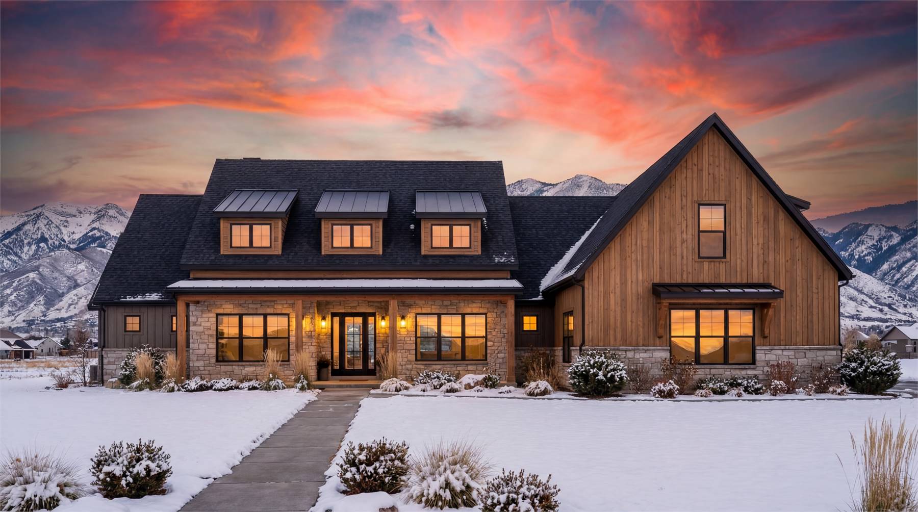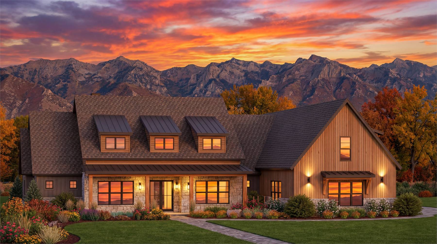 Need a spacious one-story farmhouse for a family? See what House Plan 7296 has to offer in 3,680 square feet! This unique layout tons of style and practical appeal and is built around open-concept spaces. The kitchen, with two islands and a wall countertop beneath a stunning vaulted ceiling, sits between the family room and dining area, both with beamed ceilings. This arrangement seamlessly connects the kitchen, the centerpiece of this design, to hosting potential on either side! Two hallways off the common areas contain the bedrooms, with the primary suite in the hall with the garage entrance, mudroom, walk-in pantry, laundry room, and powder room while the hallway by the family room has three bedroom suites for the kids. But that's not all! House Plan 7296 also has an office/flex room off the foyer, a bonus over the garage, and outdoor living space including a kitchen perfect for backyard barbecues!