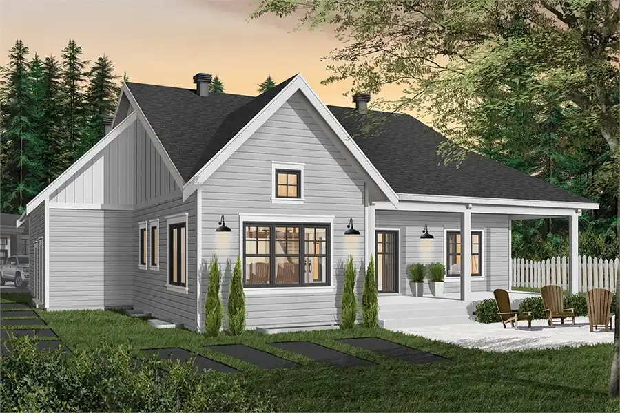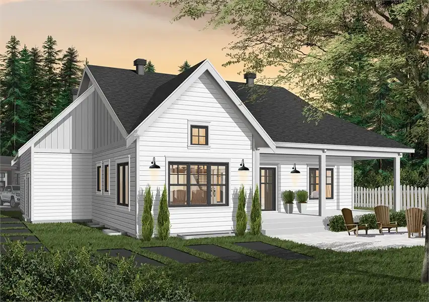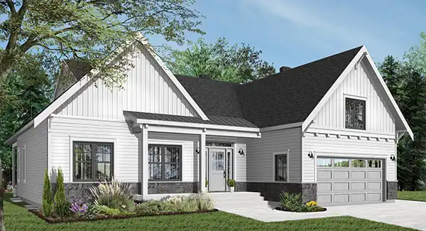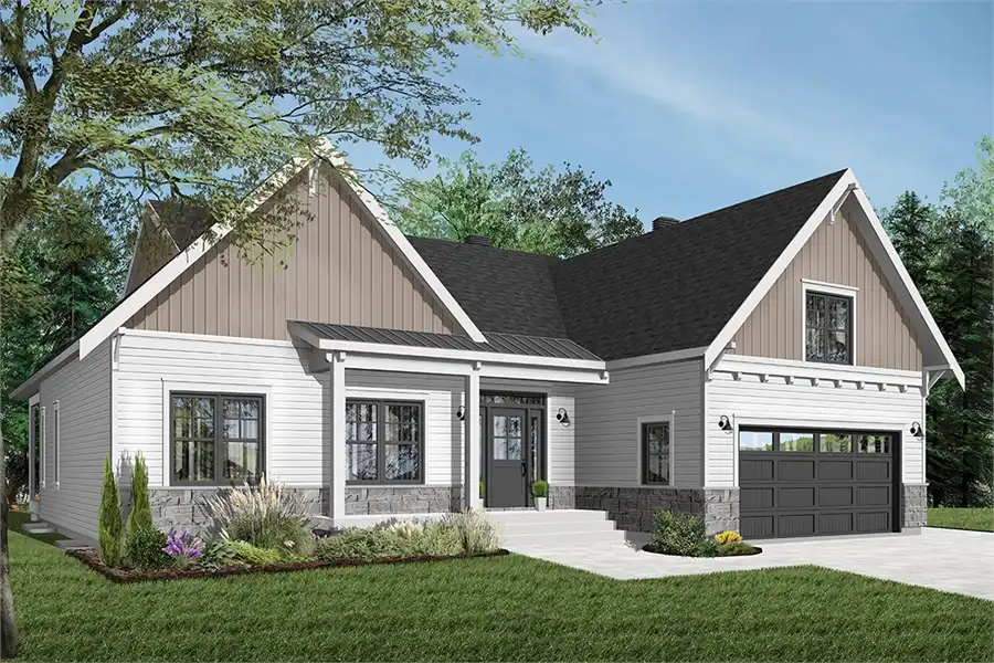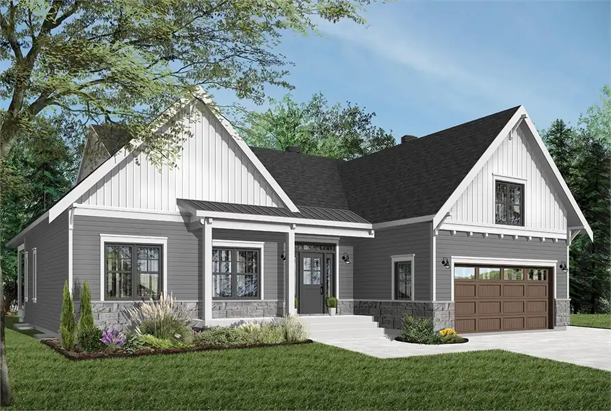 1556 SQ. FT. 2 bedroom, 2 baths, Modern farmhouse, perfect for a small lot. The kitchen has a walk-in pantry, seating for four at the kitchen island, spacious dining room, cathedral ceilings in all main areas, laundry/mud room with a door to the side of the house, and a covered porch that can be accessed from the master suite, dining room, and living room. Above the two car garage is a bonus room that provides extra living space.