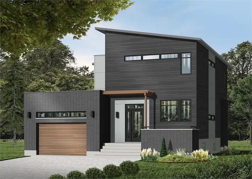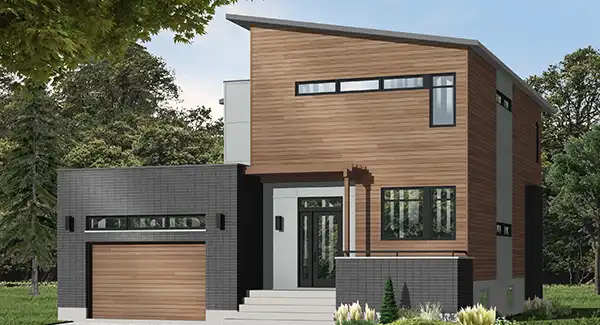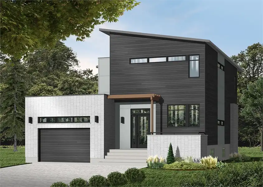 This 3-bedroom, 2.5 bath beautiful mid-century house plan features 8 foot, 6 inch ceiling's throughout the main level. With 1,999 square feet of usable living space, this model is ideal for an average family. The office is located near the front entry, which makes it accessible to customers or guest for that work at home person. The open concept living area features a beautiful fireplace that adds ambience to the dining room, joining the living room and dining room is the kitchen featuring a sizable island with eating bar, and walk-in pantry. The master suite is located on the upper level with a large walk-in closet and private bathroom that has a over-sized shower. Two additional bedrooms share a shower room. A laundry closet is located on the second level for convenience. The large one-car garage has direct access into the side entrance of the house. This house plan includes a simple exterior with accents and a sloped roof.