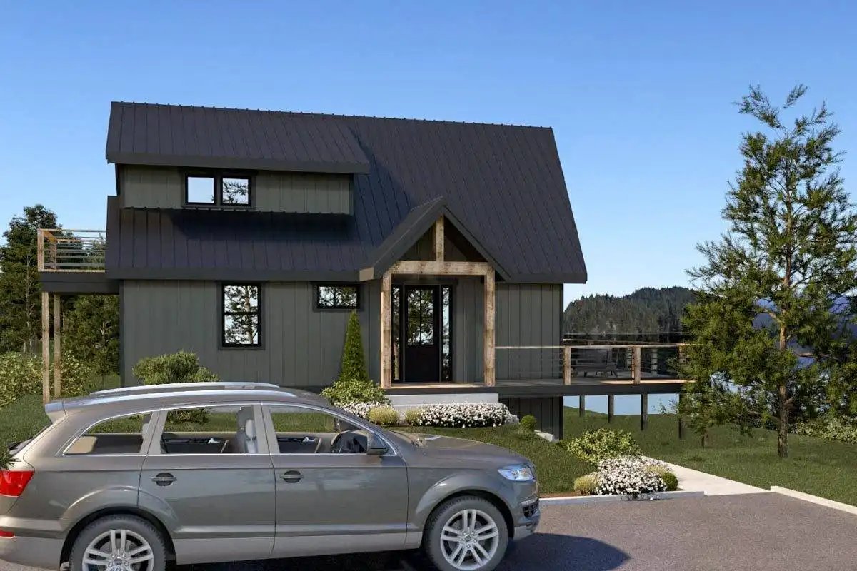 Prepare to have your breath taken away by this cottage style house plan. This 1,424 square foot home offers endless views and warm light all year long. With a large wrap-around porch, you’ll undoubtedly fall in love with being outdoors. And the stunning 2-story windows on the back of the home provide gorgeous natural light and a true appreciation for the scenery. Inside, escape to relaxing privacy with the master suite and its private third floor balcony. Or convert part of the 1,101 square foot basement/garage into a workshop or hobby area, the possibilities with this plan are endless.