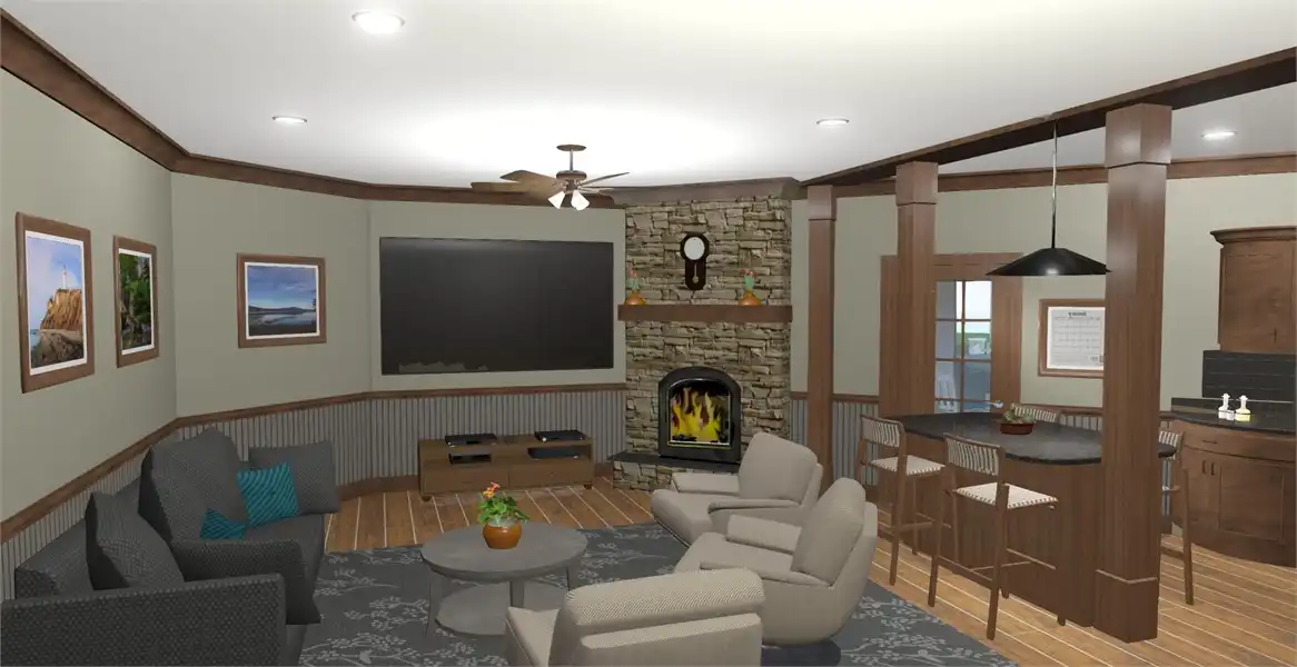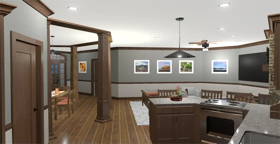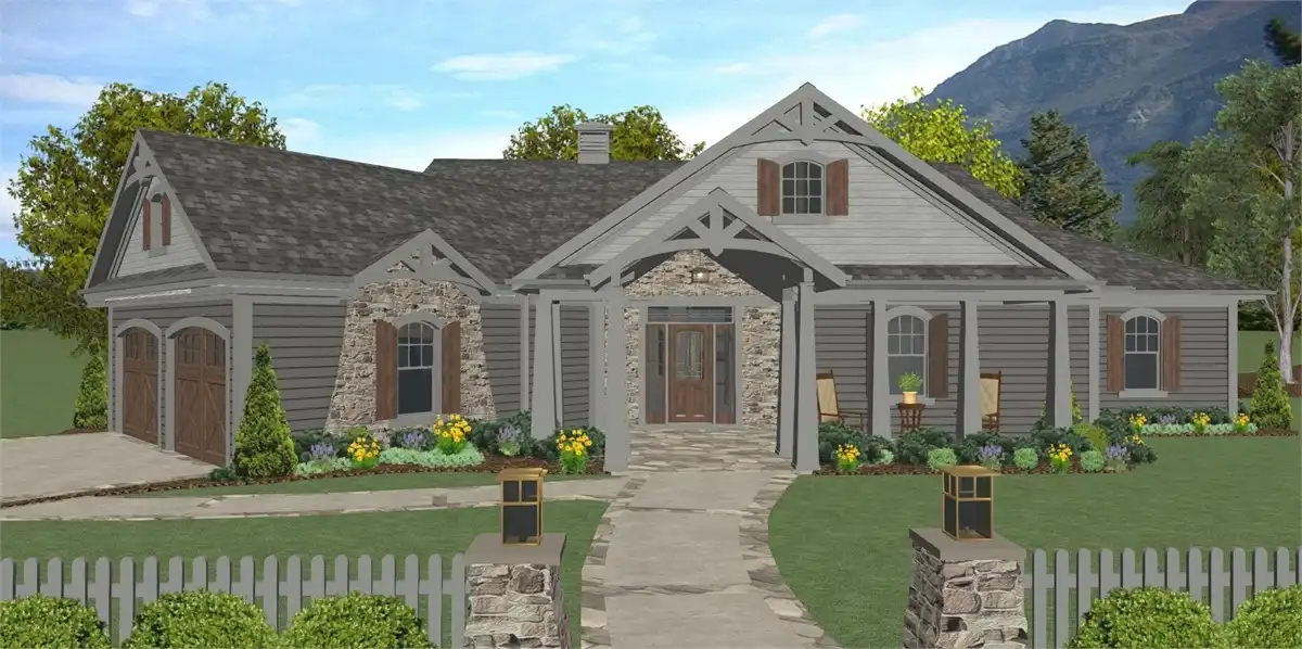 This Craftsman style plan is for you. With a similar layout to its predecessor, this home actually offers additional space for a total amount of 2,098 square feet as well as 3 bedrooms and 2.5 bathrooms. Within this single story design, you will find an attractive covered front porch and sitting area which opens in to the foyer and grand formal dining room, highlighted by its beautiful columns. An attached family room is accessible thanks to the open layout of this plan as it also flows in to the large kitchen, complete with a walk-in pantry and serving bar. Two auxiliary bedrooms share a Jack-and-Jill full bathroom at the front of the home, while the stunning master suite sits at the rear. Several great features complete the spacious master suite. His and hers walk-in closets offer plenty of private space, while a built-in media center offers a great example of this home’s Craftsman touches. Private access to the rear porch is available from the master suite, as are dual his and hers bathrooms, the ultimate testament to privacy and relaxation. Enjoy an evening watching the sunset on this home’s large back porch, or spend some time making this plan even more unique, thanks to the optional basement that it provides for you to finish to your liking.