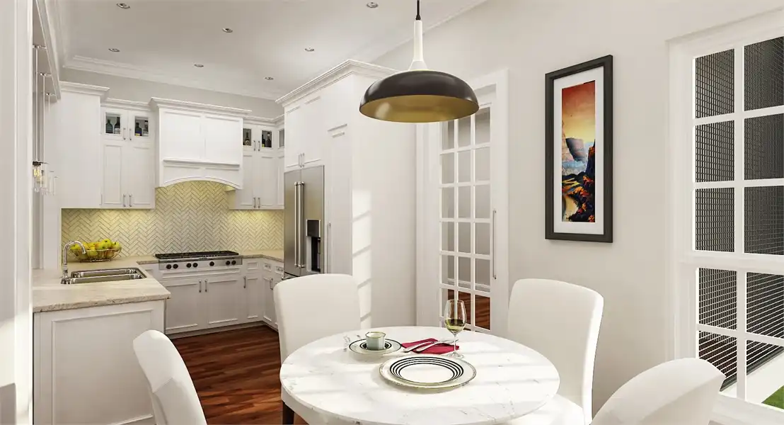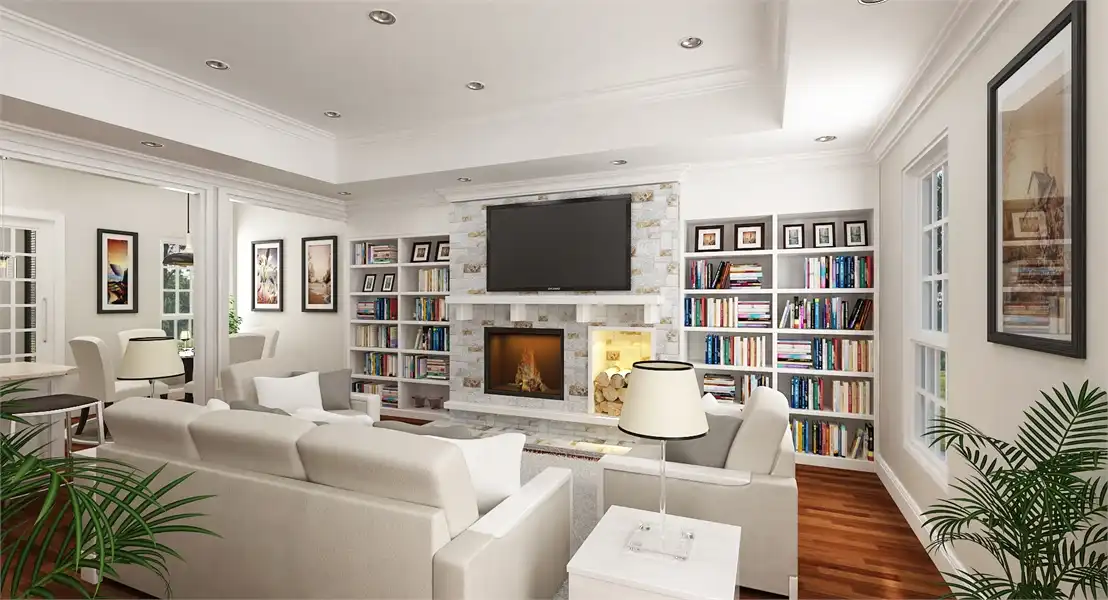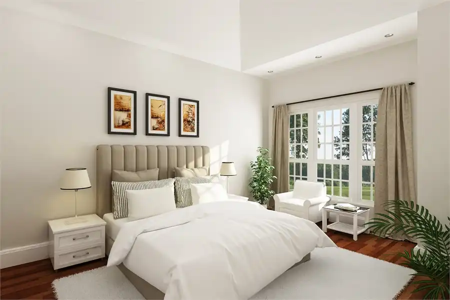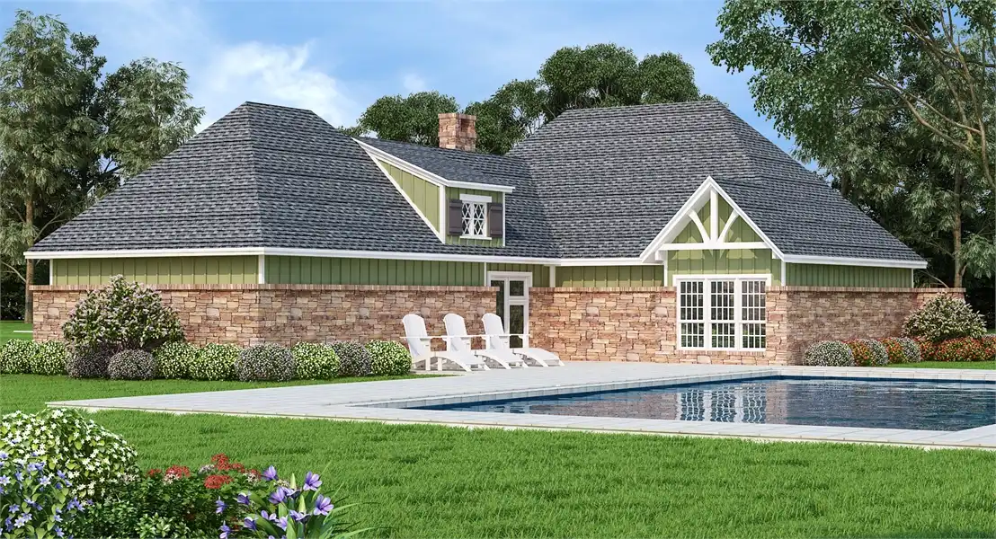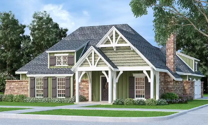 This cute craftsman home is small in size but large on features. The living room has a stone faced fireplace, 10' high tray ceiling and there is even a wood storage box and lots of built-ins. The dining and kitchen are open and airy with an eating bar open to the living room. The master suite has a 4 way vaulted ceiling, sitting area, large walk-in closet and a plush bath with his and her vanities and a separate shower. The two secondary bed rooms have liberal sized closets and one has a ceiling that slopes from 8' to 11'. The attached garage has a nice storage room and a stairwell that leads to a future space and attic. We saved the best for last and it is that huge screen porch with an adjacent patio. The design of the screen porch acts as a breezeway to bring in those cooling summer breezes and it makes an excellent place to entertain. Although compact and affordable, this little home has lots of luxury home features. This plan is also a super energy saver featuring 2x6 exterior walls.