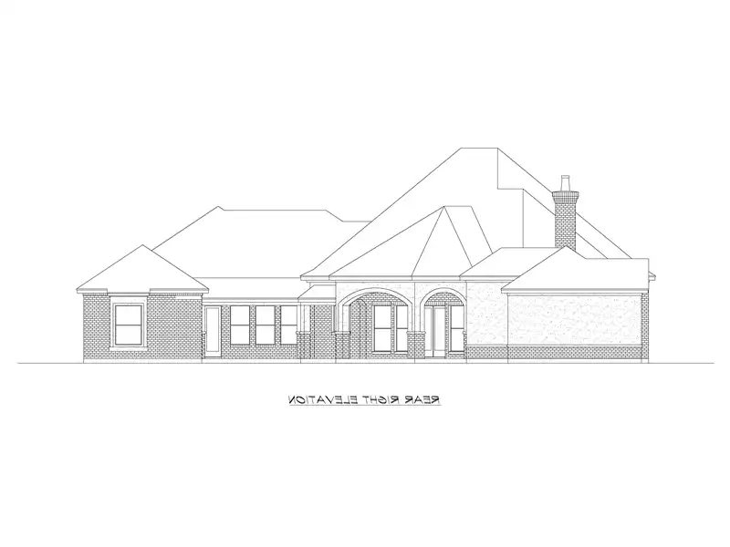 This elegant, well spaced out, luxury home plan has everything on one level and offers a split bedroom plan. With this home, the master suite ensures to have its own wing, while the rest of the bedrooms and entertaining spaces offer their own opposite wing of the home. This brick and stucco home plan is offset with lovely chimney pots, arched block pane windows, dormers, shutters, a transom over the front door, flanked with sidelites and warm coach lights to welcome you home. Enter the home into the galley hallway with a large wet bar to the right and the vaulted study, bathroom, and utility room to the left. Directly ahead is the large family room with its wall of windows, built-ins, and warming fireplace. Double French doors lead to the covered patio that extends around two-thirds of the rear of the home plan. The family room opens into the kitchen with its free-standing breakfast bar, granite countertops, pantry, and modern, state-of-the-art appliances. Behind the kitchen is a game room and two family bedrooms, each with a walk-in closet. These bedrooms share a bath room. Two garages, a one-car and a two-car, with side entries complete this side of this elegant floor plan. Off the family room to the right is the master suite that boasts a vaulted ceiling, a work area, and a luxurious master bath with his and hers vanities, separate shower and tub, a walk-in closet and a large wardrobe with built-ins. The covered patio can be accessed from the master suite, where the grille sits next to the master suite, thus completing this elegant luxury house plan.