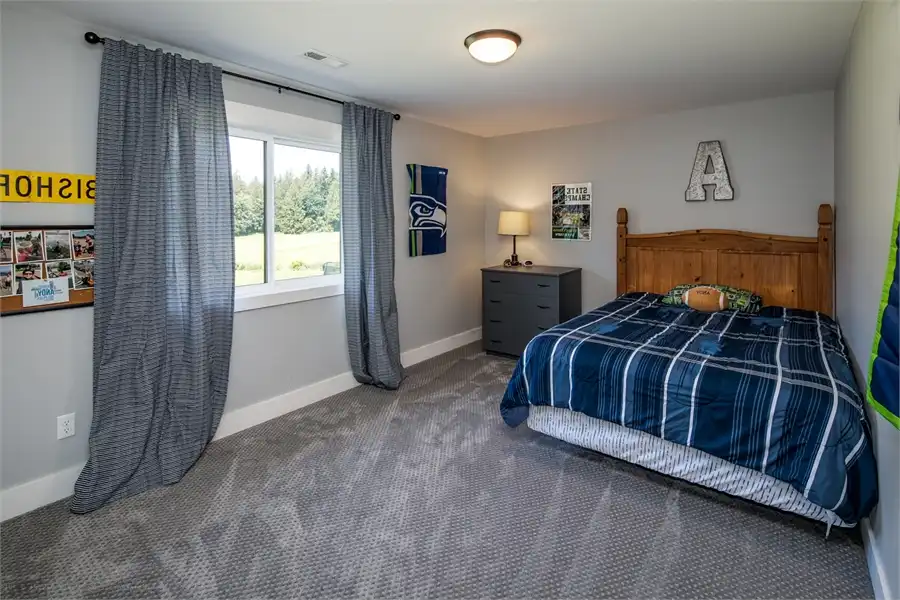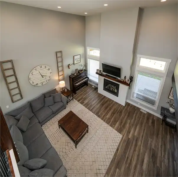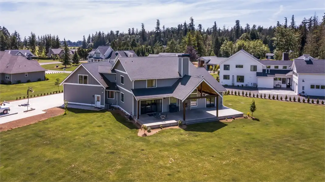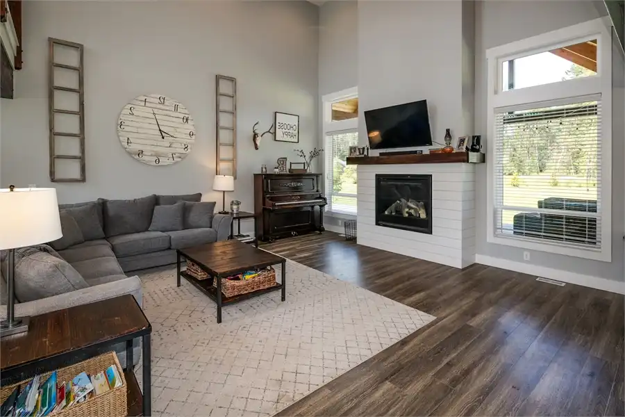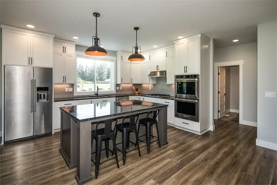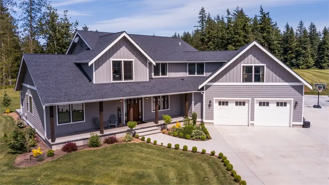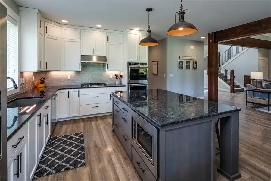 This charming two-story, 4 bedroom farmhouse boasts a comfortable 2,849 square feet of living space.  Park your car inside the conveniently attached 2-car garage before stepping up on to your spacious wraparound porch. Enter through the front door and step foot on to the spacious foyer. Nearby is a formal den that can double as an office, while directly ahead lies an expansive open layout. Here you will love to find that the great room joins with the dining nook and island kitchen. In fact, the great room shares a double sided fireplace with the covered back deck area which is accessible via the dining room. Finally, the first floor is completed with the convenient master suite, complete with a large bathroom featuring dual vanities, as well as a spacious walk-in closet. The second floor is home to three more bedrooms, all of which provide ample space and share a full hallway bath, while looking down on the great room below. The addition of a large bonus room that spans the garage gives this home the benefit of being flexible to whatever you or your family may need!