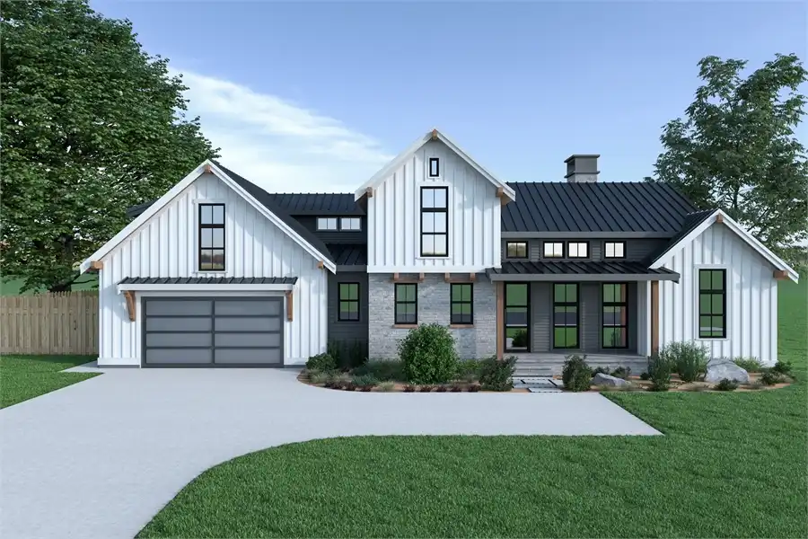 This beautifully modernized 2,490 square foot farmhouse style plan features plenty of space for everyone to enjoy. With plenty of curb appeal, this home draws you in as you begin your journey throughout its 2-stories that include great things such as a 2-car garage and 3 bedrooms. Once you enter past the covered front porch, step foot in to the entryway and grand foyer. A nearby front office is private and convenient, as is a laundry room and mud room close to the garage. Past the entryway, you will love the great open concept living spaces that lie ahead. A large great room features a fireplace and access to the covered rear patio, while a natural flow leads to the attached dining room and island kitchen. To finish the first floor, you will love the convenience of the master suite, complete with its double vanity bathroom and amazing walk-in closet. The second floor is home to two more bedrooms which share a full bathroom, as well as a great and flexible bonus room over the garage, a great space to add a game or recreation room, or whatever else you may need!