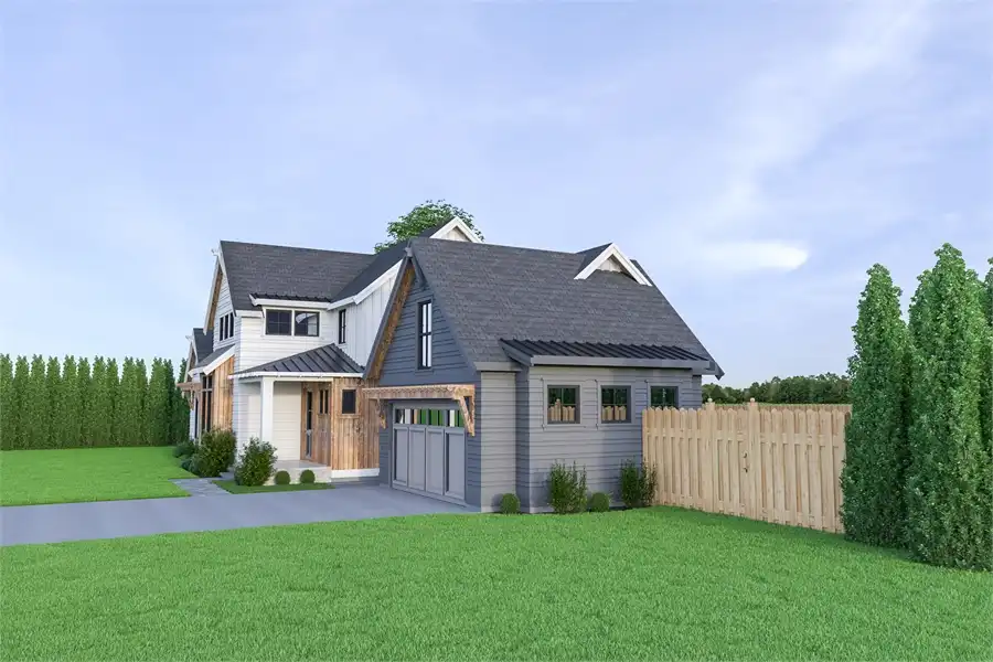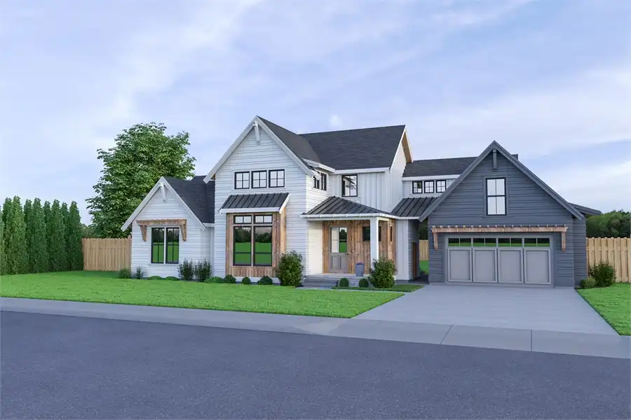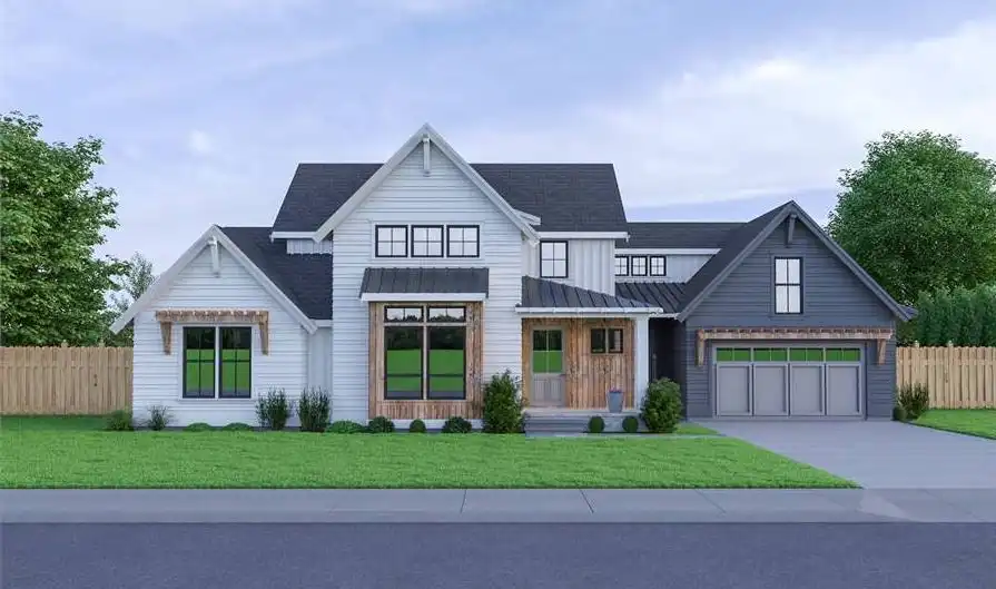 This 2-story farm house style plan is both unique and highly functional. Featuring 1,974 square feet of open living space, 3 bedrooms and 2.5 bathrooms, this home offers a fresh design on one of our most popular styles. A covered breezeway shields the detached 2-car garage from the elements and provides entry in to the first floor laundry and mud room, while a short walkway leads to the covered front porch and entryway. A nearby powder room is easy and convenient for guests, while the entryway then spills in to the wonderful open concept living spaces which includes the massive great room and its fireplace, the dining room, and finally the large gourmet kitchen. A covered patio off of the dining room makes for great outdoor living and entertaining. The first floor is highlighted by its fantastic master suite, a place of true relaxation thanks to its vaulted bedroom, spa style bath with dual vanities, and spacious walk-in closet. Upstairs you will be pleased to find two more full bedrooms which share a hallway bath, a great and private place for growing children. A long hallway is warmed by natural light thanks to its ample windows, leading to an expansive bonus room over the garage with its very own sky walk! With over 350 square feet, this room is perfect to add whatever space(s) that you and your family may need to make this home a dream come true.Sleek and stylish with a bit of old time charm, this 2-story farm house style plan is both unique and highly functional. Featuring 1,974 square feet of living space, which includes things such as 3 bedrooms and 2.5 bathrooms, this home is a fresh new twist on one of our most popular styles. Park your car in one of the spaces within the large 2-car garage, and head inside to explore all that this fabulous home has to offer. A covered breezeway shields the detached garage from the elements and provides entry in to the first floor laundry and mud room, while a short walkway leads to the covered front porch and entryway. A nearby powder room is easy and convenient for guests, while the entryway then spills in to the wonderful open concept living spaces which includes the massive great room and its fireplace, the dining room, and finally the large gourmet kitchen. A covered patio off of the dining room makes for great outdoor living and entertaining. The first floor is highlighted by its fantastic master suite, a place of true relaxation thanks to its vaulted bedroom, spa style bath with dual vanities, and spacious walk-in closet. Upstairs you will be pleased to find two more full bedrooms which share a hallway bath, a great and private place for growing children. A long hallway is warmed by natural light thanks to its ample windows, leading to an expansive bonus room over the garage with its very own sky walk! With over 350 square feet, this room is perfect to add whatever space(s) that you and your family may need to make this home a dream come true.