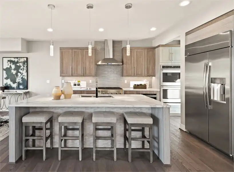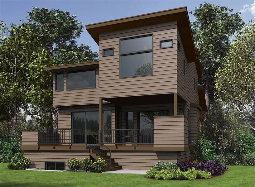 Take a look at House Plan 7454 if you want a home that stacks its square footage to shrink its footprint and cost to build! This 2,877-square-foot design offers four bedrooms and three and a half bathrooms across three levels. The main level is totally open concept, with clear sightlines between the island kitchen, dining area, and great room. This space also opens to outdoor living in back! Head upstairs and you'll find the family bedrooms, including a five-piece primary suite and two bedrooms that share a hall bath. The final bedroom is a suite and it's located off the rec room in the basement for privacy. You'll also find the front-entry drive-under garage and laundry room down here. This is a wonderful layout that beautifully combines modern and traditional design features into one practical home!