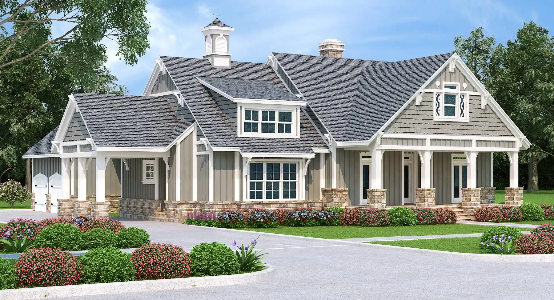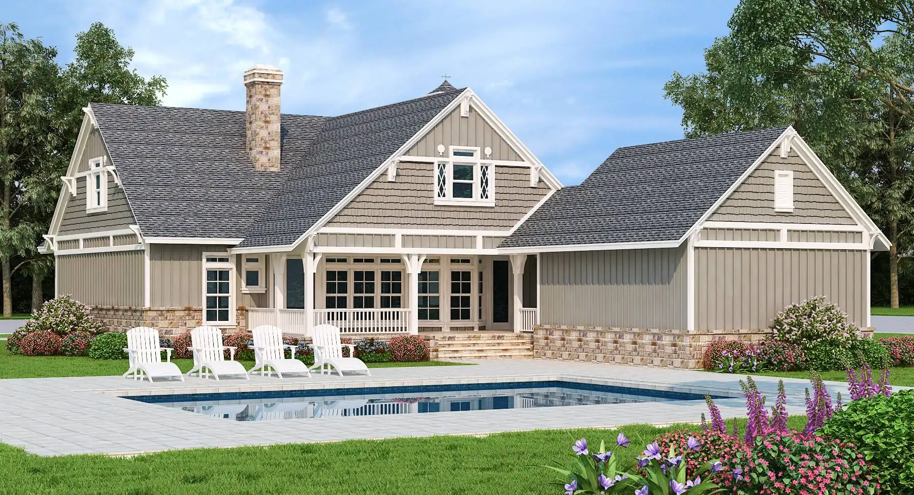 This 3 bed room craftsman style home is super energy efficient featuring 2x6 exterior walls and a host of other energy saving features. The interior contains an array of features on the most wanted list by homeowners including the very open design of the main living areas. The living room is open and bright and features a built-in library, wood burning fireplace and a sweeping stairwell entrance to the upstairs bonus room. The bonus room has been preplanned with an adjoining bath making it the perfect space for a game room or home theatre. The kitchen is large, fully appointed and has an adjoining butler’s pantry. The utility room is but a step away but privately located and can also be accessed from the master bath for added convenience. The master bedroom is generous sized and features 16’ partial ceilings that allow light from the dormer windows to illuminate the master bedroom. Best of all, there is a private porch for the owners or it can be used as a porte-cochere for making those quick stops without the need to garage the car. The exceptionally large rear porch provides lots of room for outdoor entertaining and there is a breezeway to the two car garage. This plan is also suitable for handicap accessibility with many features built in to the design such as extra wide hallways and 3’ passage doors. We recommend that if building to handicap accessible standards, the home should be built using the optional slab foundation.