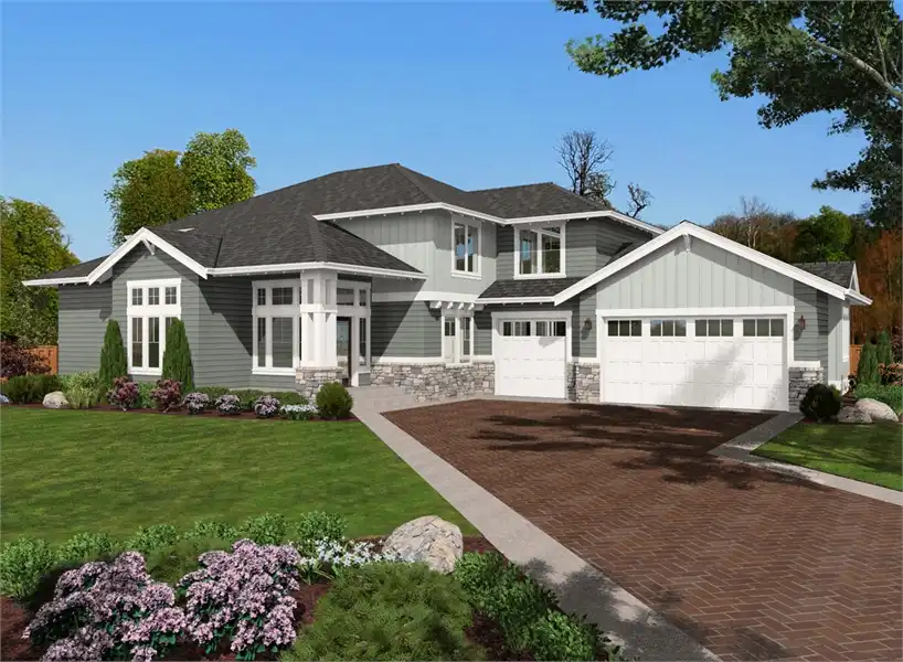 Providing 2,650 square feet of living space within 2 stories, feauturing 3 bedrooms and 2 full bathrooms, this Craftsman style home plan is not only comfortably large, but it is practical and affordable as well.  Beginning with the foyer, you will find a natural, open flow throughout. A den/office is to your left and the combined formal living room and dining room to your right. Beyond these spaces, you will find a more relaxed setting, including the family room, which joins with the dining nook and its outside access, as well as the gourmet island kitchen. Not only does the family room have a captivating fireplace that draws the room together, it also provides discreet access to the laundry room and mudroom, as well as a half bath, all which lead to your attached 3-car garage! Upstairs is home to the 3 bedrooms that this home provides, including 2 secondary bedrooms which share a full bath. A nearby bonus space makes for a great play room for the kids, while the large master suite is your own private escape - complete with a double-vanity spa-style bath, and a comfortable walk-in closet.