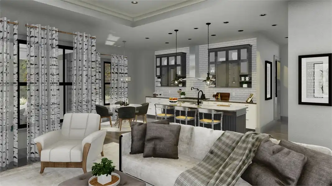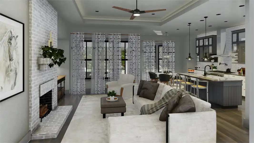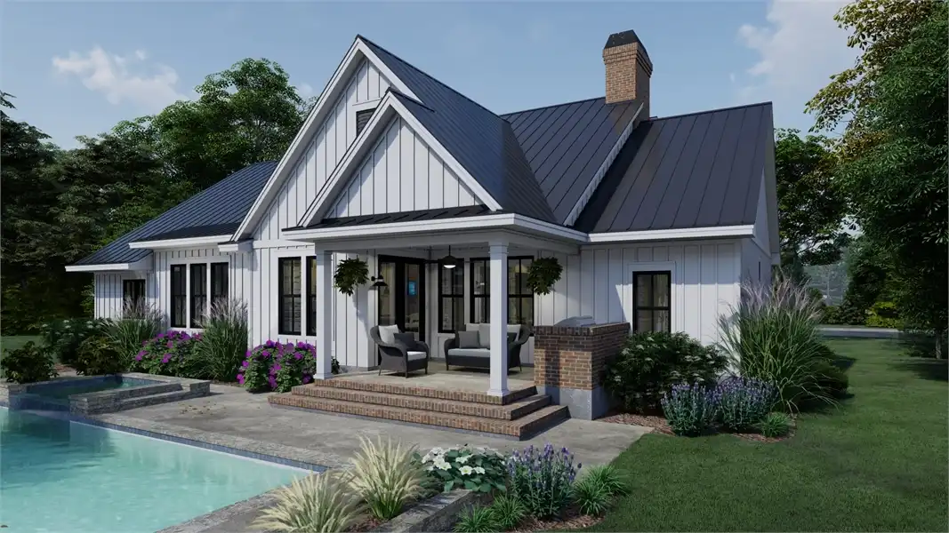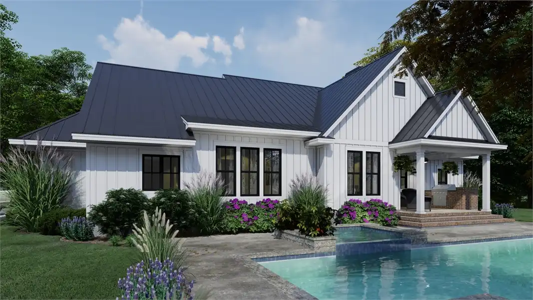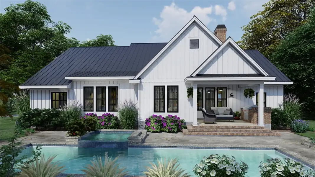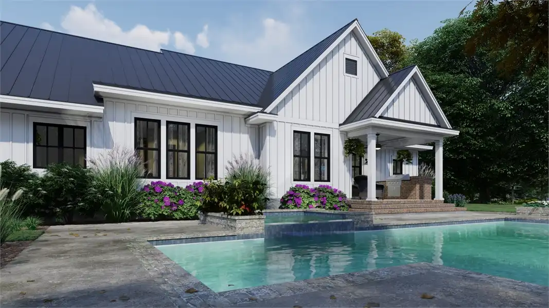 Brand new single story modern farmhouse features 2,192 square feet, 4 bedrooms and 3 bathrooms, along with a lot of other added bonuses. To begin, enter in to the grand foyer via the covered front porch. Here you will find a lovely open layout that mixes formal spaces with more intimate ones to offer the best plan possible. A private study sits at the front of the home and can double as a guest bedroom if necessary, thanks to its attached full bath. The formal dining room is also close by, before opening on to the large family room which flows in to the gourmet island kitchen and dining nook with its access to the rear lanai and outdoor living space. With such an amazing outdoor living area, consider talking with your designer and adding a pool or other forms of enjoyment to further enhance the experience! Nearby to the family room, two auxiliary bedrooms can be found sharing a jack and jill bath, making these rooms a smart option for growing children. Meanwhile, the master suite can be found at the other end of the home near the 2-car garage. The master is totally focused on your comfort, thanks to the spa-style bathroom with dual vanities and garden tub, as well as the spacious walk-in closet and nearby laundry room. To add a bit of personal touch and flair to this home, you will love customizing the bonus room that sits above the garage, a sizable blank canvas of space to make this plan truly one of a kind!