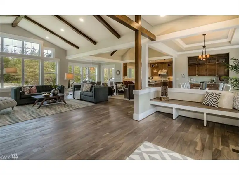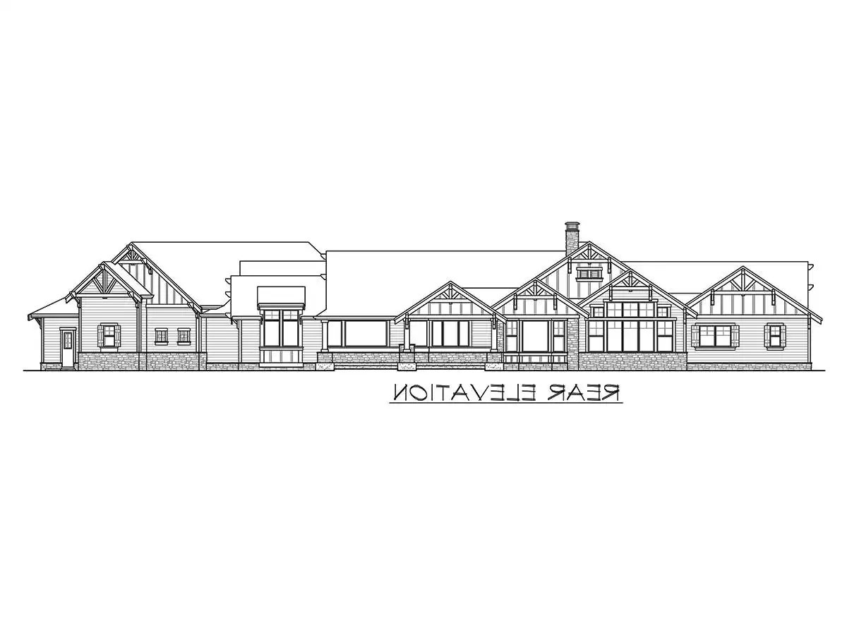 House Plan 7467 is a beautiful, 3,270-square-foot Craftsman ranch design that offers great features you won’t want to miss! For starters, a comfortable single-story layout provides ample space and comfort for everyone, with plenty of communal areas to spend time together and make countless memories. After parking in one of the 4 garage spaces, step outside and admire the uniquely charming Craftsman façade with exposed wood and stone and ornate finishes. As you begin your journey inside, you can either enter onto the foyer via the covered front porch, or you can enter from the garage and into the mudroom/laundry room. The foyer greets you with this home’s spacious and open layout, finding the great room directly ahead and 3 bedrooms to your right. Two of the bedrooms share a Jack-and-Jill style bath while the other has its own private ensuite and walk-in closet. It would be perfect for guests! The great room is highlighted by amazing towering windows and a shared double-sided fireplace which divides this space from the gourmet kitchen and its two amazing islands! The kitchen is flanked on either side by the breakfast nook, which provides access to your backyard barbecue station, and the formal dining room, a wonderful space for family get- togethers and entertaining. And at the end of the day, kick back and relax in the privately located primary suite. You're sure to love soaking in the spa-style bath with a roomy five-piece arrangement!