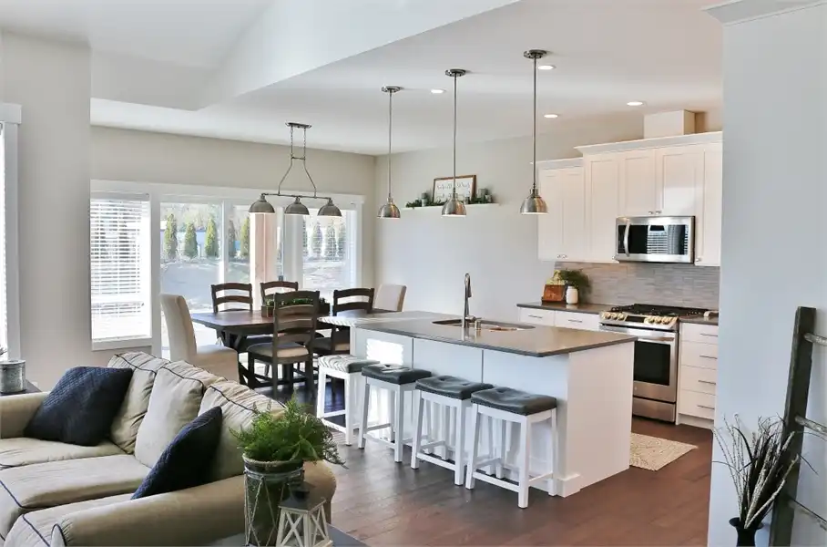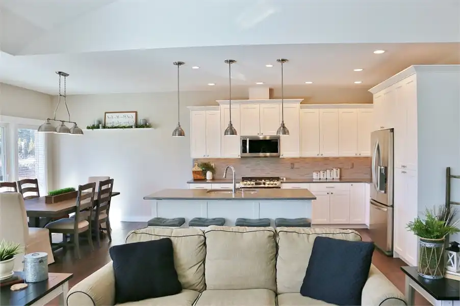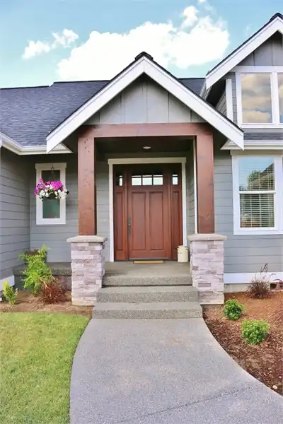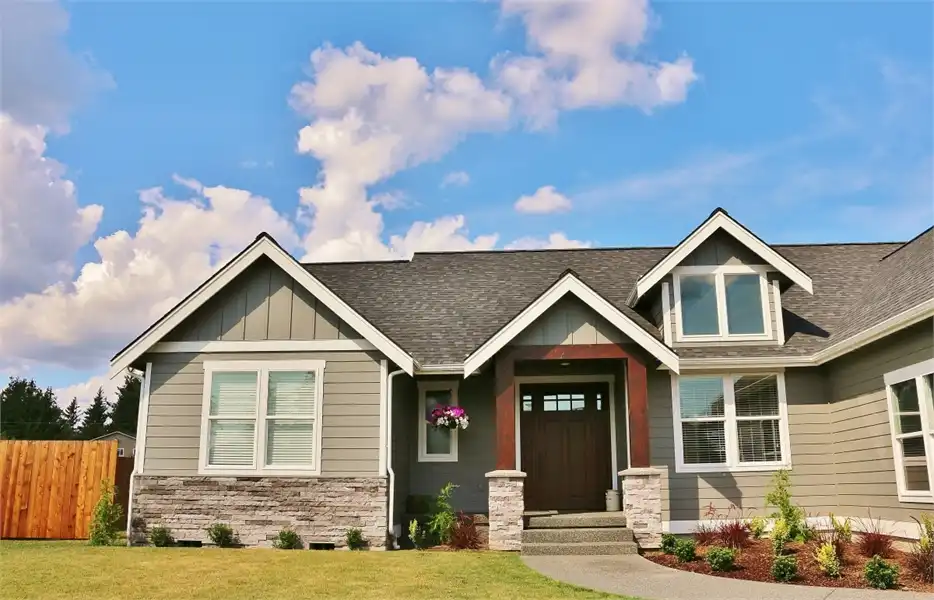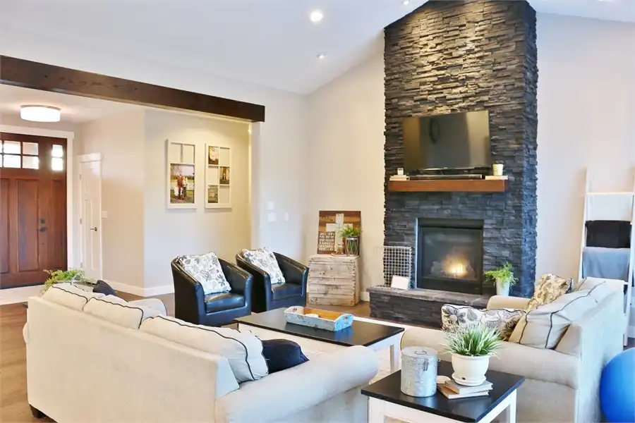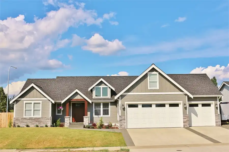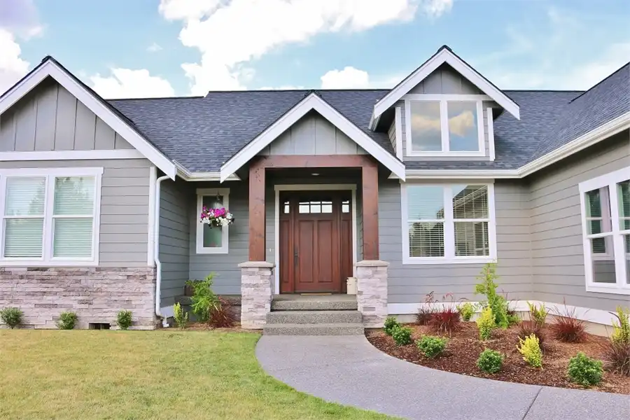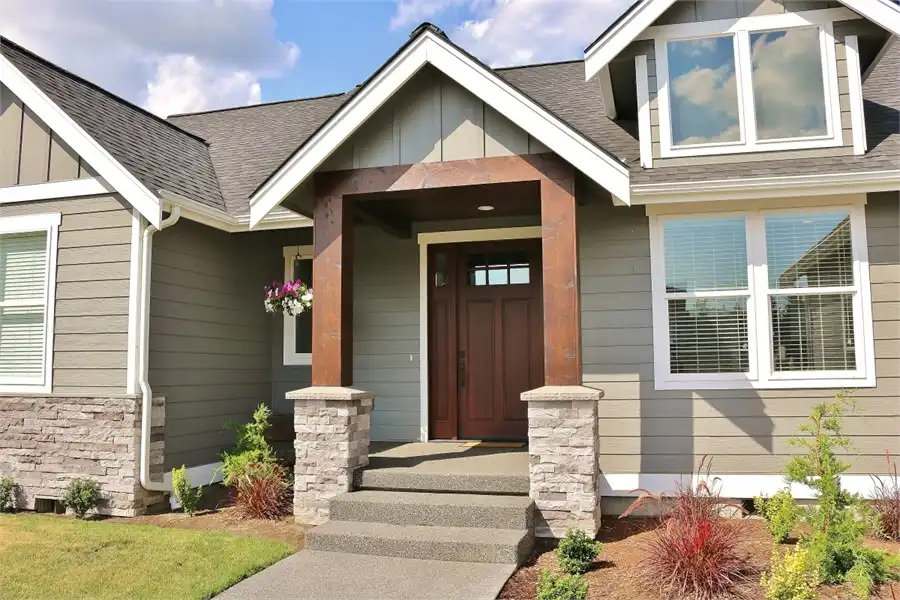 This beautiful French Country style plan features a ranch style layout. When walking up to the home, you are greeted with wooden beam columns that are accented by stone. Inside this spacious home provides 3 bedrooms and 2.5 bathrooms, as well as a large bonus room and a 3-car garage, amongst its 2,148 square feet of living space. The journey begins as you step on to the covered front porch. Exposed wooden beams and sensible touches such as stone, give this home maximum curb appeal. Inside, you will find an open concept layout, featuring a private home office near the entryway, followed by the family room which joins with the dining room and island kitchen to create a truly inclusive space. Off of the living room you will find 2 bedrooms and a shared full bath, a great space for kids of all ages, as well as guests and family. The other side of the home finds the comfortable master suite. Kick back and relax after a long day by pampering yourself in the spa-style bath. Or get ready for another productive day at the office by looking your best thanks to the large walk-in wardrobe closet. This home also provides a comfortable covered rear porch and patio, along with an almost 300 square foot bonus room above.