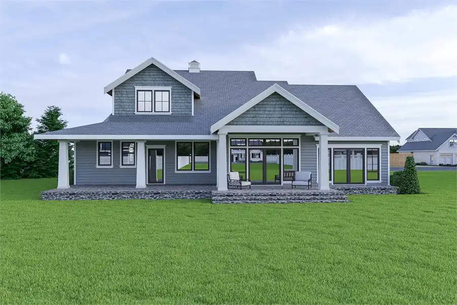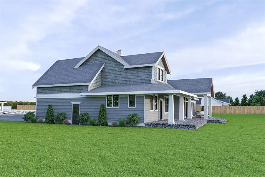 This mixture of Beach Style and Cape Cod results in a plan that is relaxing as it is functional. Enjoy the superior curb appeal of this quaint 3 bedroom, 2.5 bathroom home which, past the front doors, offers a spacious 2,315 square feet of living space. Once inside past the covered front porch, you will enjoy stepping immediately into the open concept design of the floor plan, complete with a private home office to your immediate left. As you progress further, you pass the entrance to the first floor master suite, a great and tranquil place, complete with a large bathroom and a walk-in closet. Beyond, you will love the vaulted ceiling of the family room which, in turn, joins with the dining room and kitchen, creating a seamless and inclusive space, eventually flowing out on to the covered rear porch, the perfect place for a neighborhood barbecue or family get together. Finally, upstairs you will find two spacious bedrooms and a shared full bath, as well as a multi-functional bonus room, great for adjusting the home to fit you and your family's specific needs and desires.