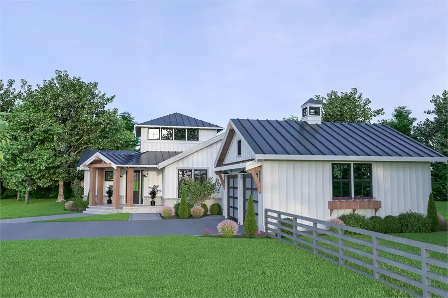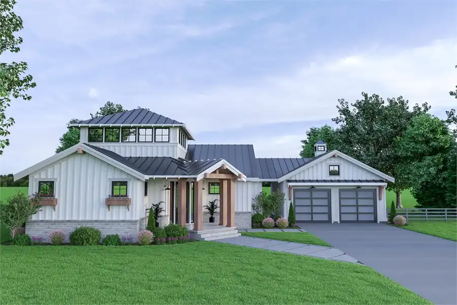 With 2,232 square feet, 3 bedrooms and 3 bathrooms, this beach style house plan is unique and beautiful. The front of the home provides an alluring front porch with wooden columns. The foyer spills out into a large hallway, to your right, the spacious master suite and its spa bath and walk-in closet, and to your left, a large den that can double as an office or additional bedroom if necessary. Further inside, you will love the open yet inclusive space which makes up the rest of the home, including the vaulted family room, dining nook, and island kitchen which opens on to the covered rear patio. Another nearby bedroom is easily accessible, before moving upstairs to the open-air loft which features its own full bath, great for guests or kids.