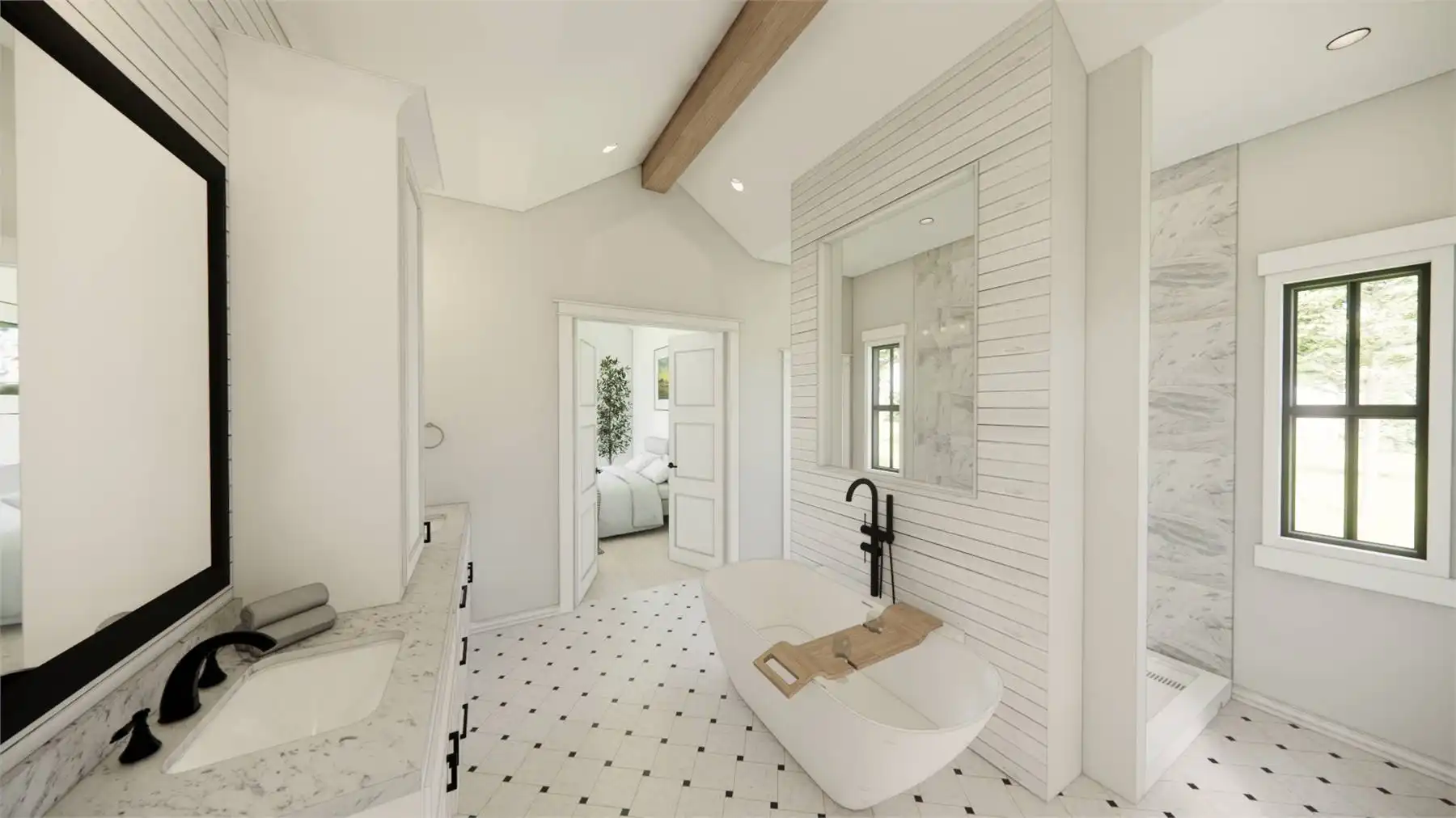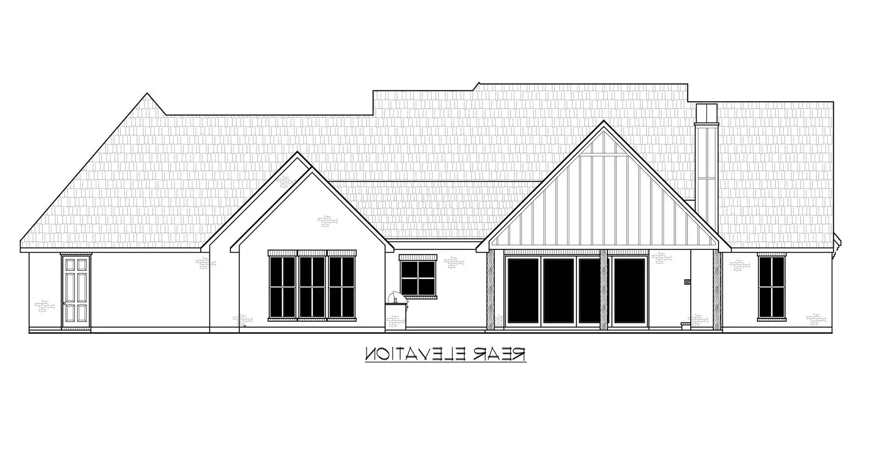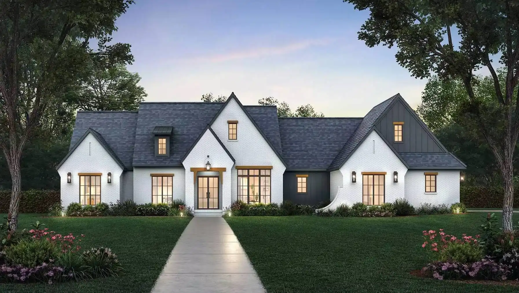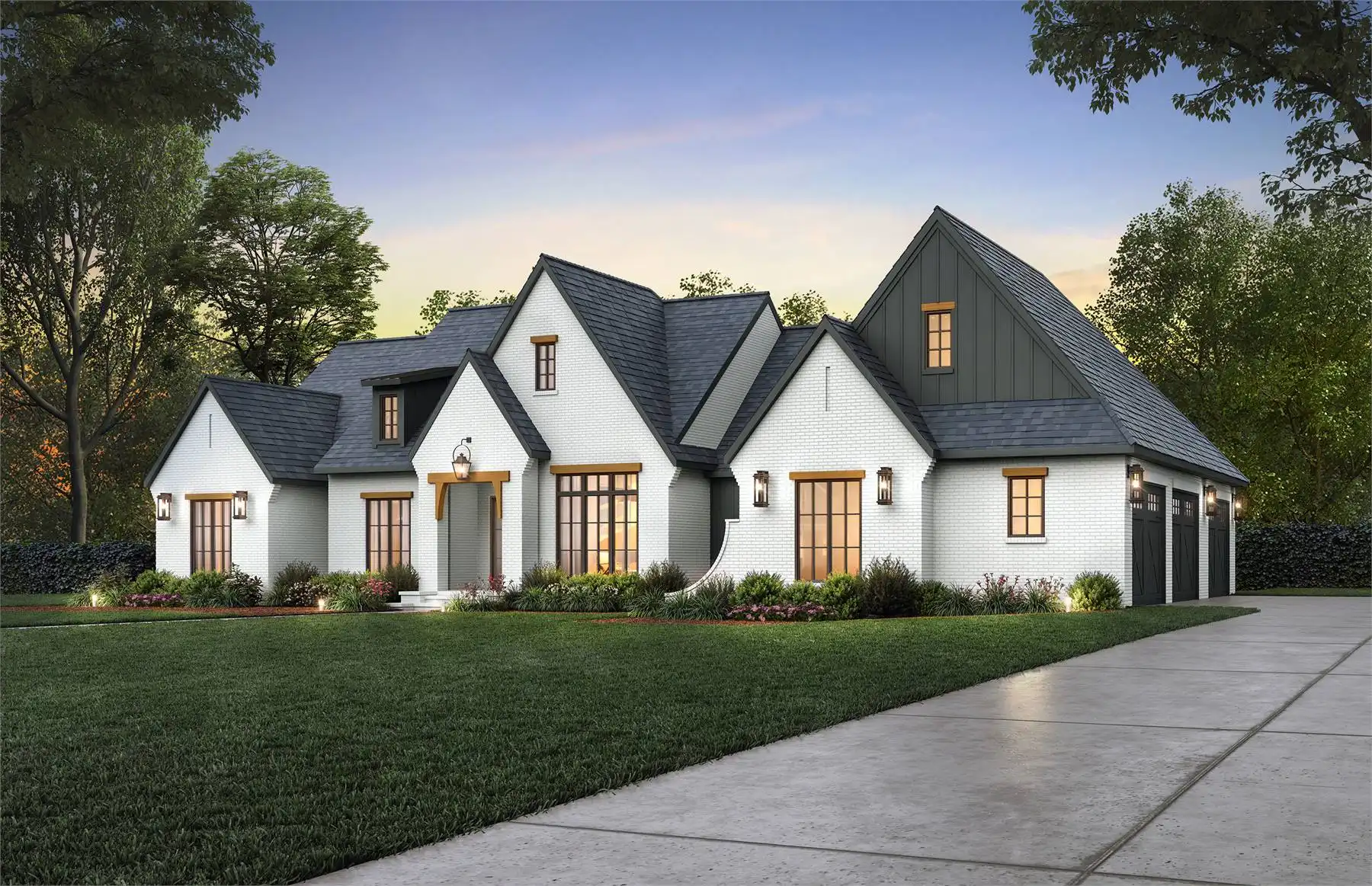 House Plan 7505 makes a wonderful home for today's families with 2,674 square feet, four bedrooms, and two-and-a-half bathrooms on one level. The side-entry three-car garage keeps the facade clear, so you can enjoy the curb appeal of streamlined gables. Inside, the open living makes up the heart of the home. There's also formal dining by the foyer. The master suite is privately located in its own hallway behind the kitchen while three secondary bedrooms are in a hallway on the opposite side of the house. Want outdoor living? Just look in back to find an outdoor kitchen and fireplace! House Plan 7505 packs a ton of potential, so make sure to explore every bit of the floor plan!