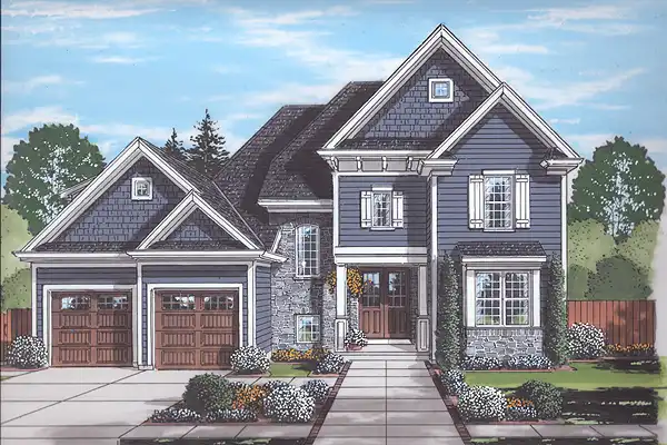 This beautiful family sized home displays exterior décor of stone and siding with wood trim and shake accents. The open first floor plan is comprised of the great room with 10' ceiling height and beamed ceiling, dining room and kitchen. The 10' island provides additional seating. A roomy pantry near the mud room provides order and convenient storage for the family. The study offers privacy and comfort for quiet time. Turned stairs provide access to the second floor which boasts four bedrooms. The master bedroom suite features a walk-in closet. Second floor amenities also include the laundry room and three additional bedrooms, one with a private bath. Outdoor enjoyment can be had in the covered rear porch which makes this home perfect for a golf course or lake view home.