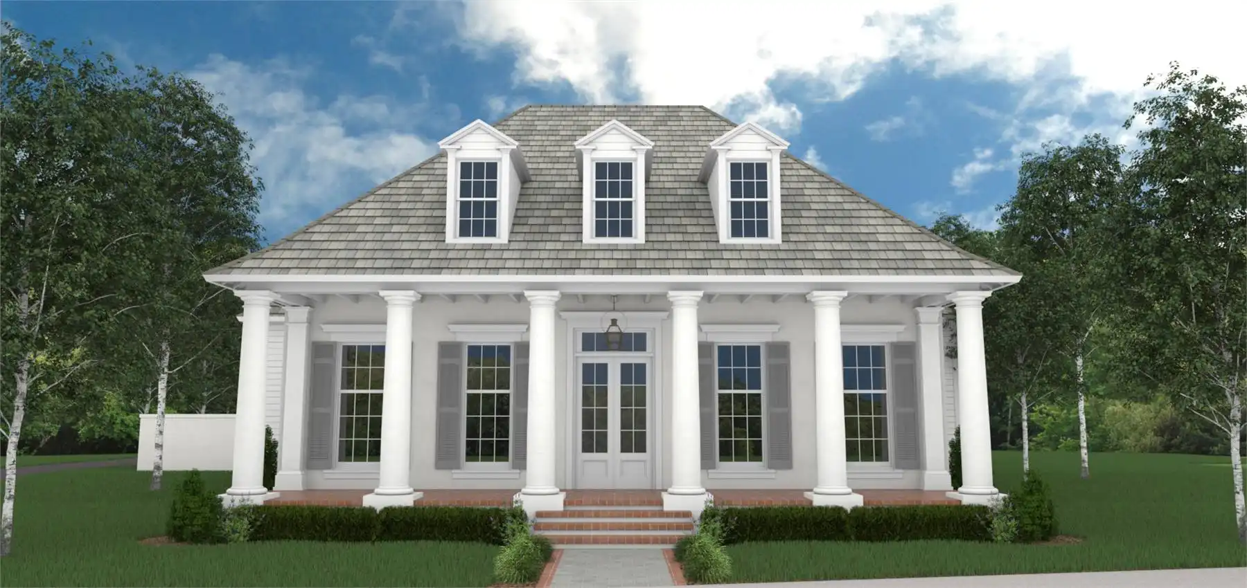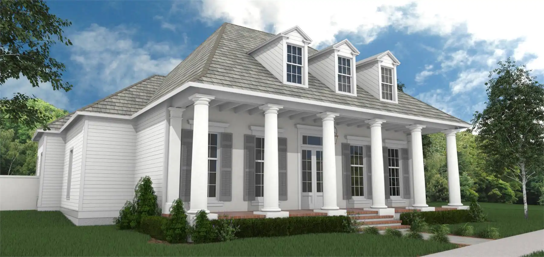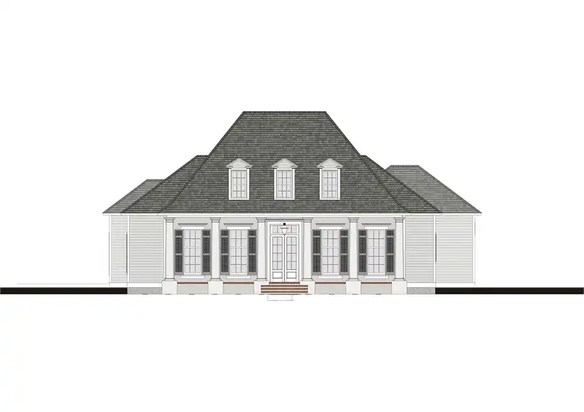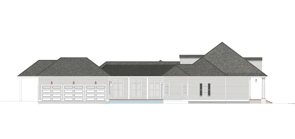 Wrapped in beautiful porches, this 3,359 s.f. beautiful country style house plan features everything including a rear 3-car garage and second floor with 4th bedroom and flex space. The first floor is completely open and spacious with split bedrooms. Beyond the captivating front façade, featuring stately columns and a covered front porch, you enter inside to discover all that this 4 bedroom, 3.5 bath, floorplan has to offer. As you step in and on to the foyer, take note of the open concept and 11’ ceilings that span throughout the main living areas, an airy and inclusive touch. All connected together, you will find the large family room joining with the dining room and gourmet island kitchen, complete with a walk-in pantry! An office and two bedrooms are nearby, the latter of which share a full jack and jill bath, complete with dual vanities. Back to the main areas, a hallway directly off of the kitchen leads you past the laundry room and powder room, and towards the impressive master suit, with a quick stop by the back door which opens on to an amazing covered porch, with the three car garage nearby. Finally, the master suite is one of maximum convenience and comfort, featuring 10’ tray ceilings, as well as a luxurious spa-style bath and even the added bonus of his and hers walk-in closets.