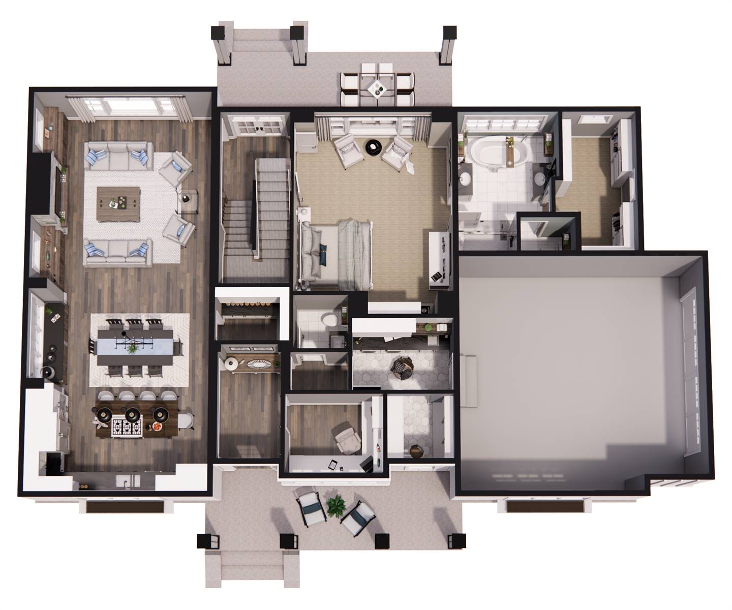 With 2,467 square feet of heated living space, this 3-bedroom, 2.5-bath home is designed for comfortable everyday living. An open floor plan connects the great room, dining area, and kitchen, creating an easy flow for both daily routines and gatherings. The kitchen includes a central island, breakfast nook, and walk-in pantry that add function and convenience. A fireplace anchors the great room and adds warmth to the shared living space. The primary bedroom is located on the main floor and features a sitting area and walk-in closet for a private retreat. A home office and first-floor laundry add practical flexibility, while covered front and rear porches extend the living space outdoors. This welcoming layout balances openness with thoughtful details that make the home feel complete.