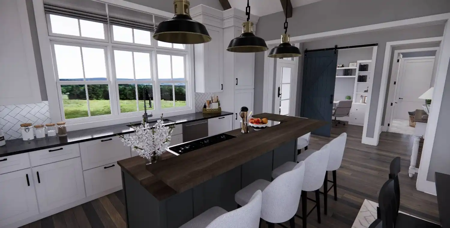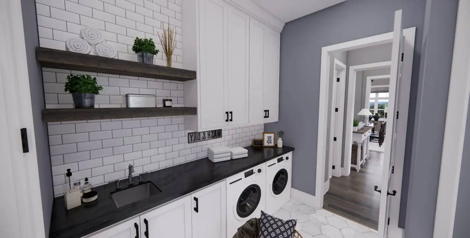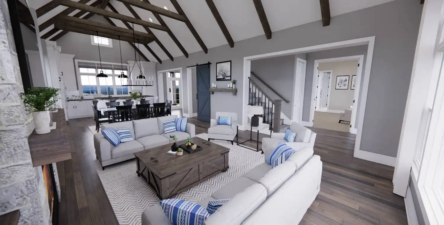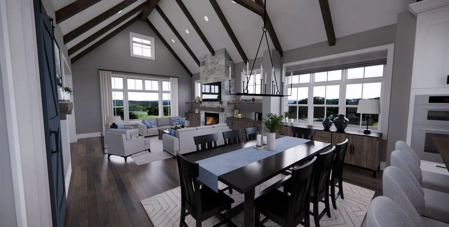 With 2,467 square feet of heated living space, this 3-bedroom, 2.5-bath home is designed for comfortable everyday living. An open floor plan connects the great room, dining area, and kitchen, creating an easy flow for both daily routines and gatherings. The kitchen includes a central island, breakfast nook, and walk-in pantry that add function and convenience. A fireplace anchors the great room and adds warmth to the shared living space. The primary bedroom is located on the main floor and features a sitting area and walk-in closet for a private retreat. A home office and first-floor laundry add practical flexibility, while covered front and rear porches extend the living space outdoors. This welcoming layout balances openness with thoughtful details that make the home feel complete.