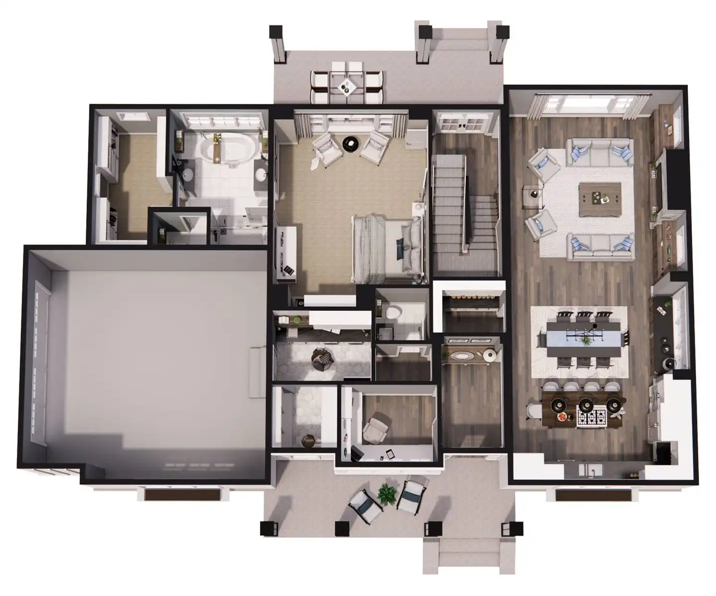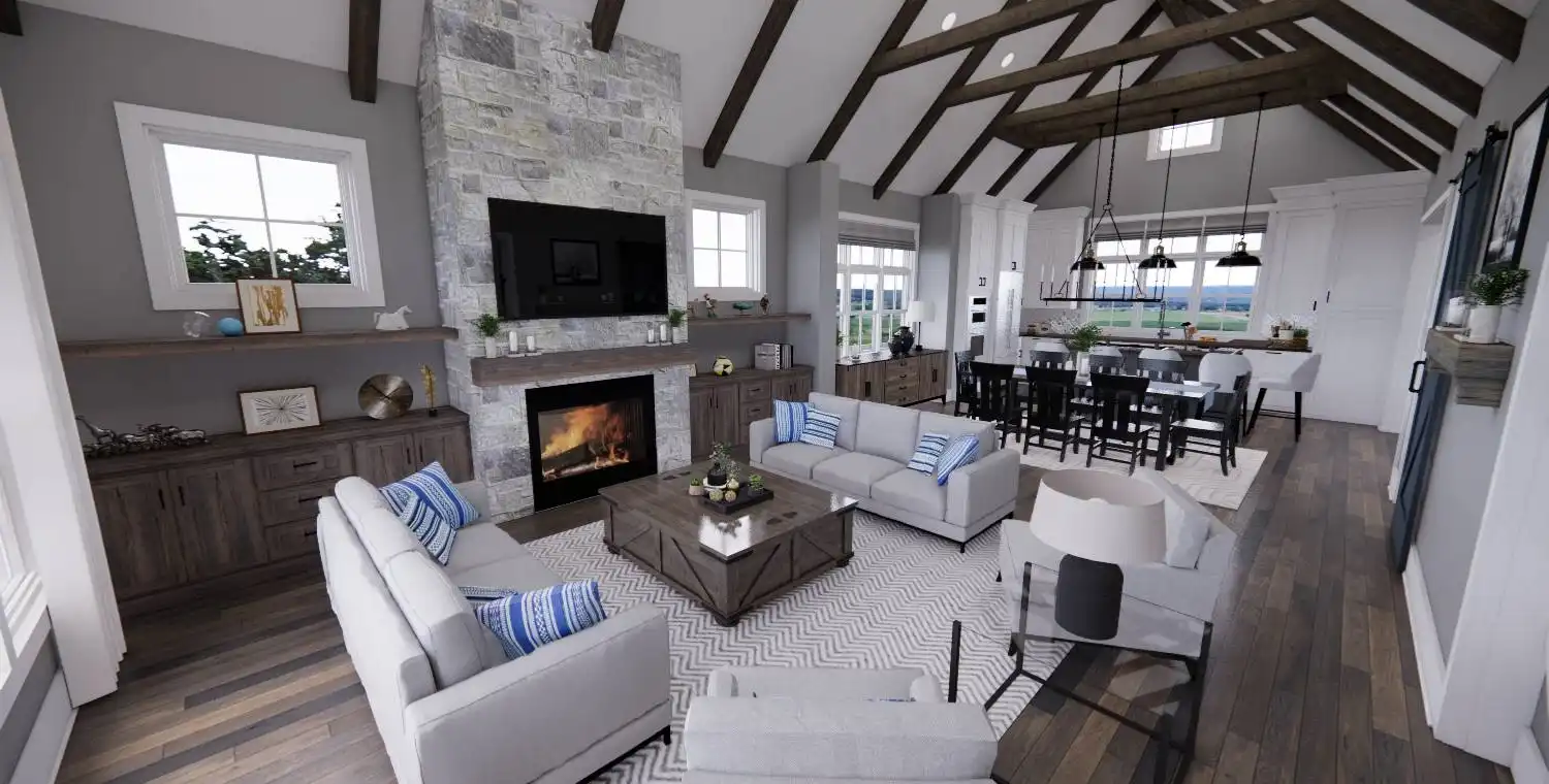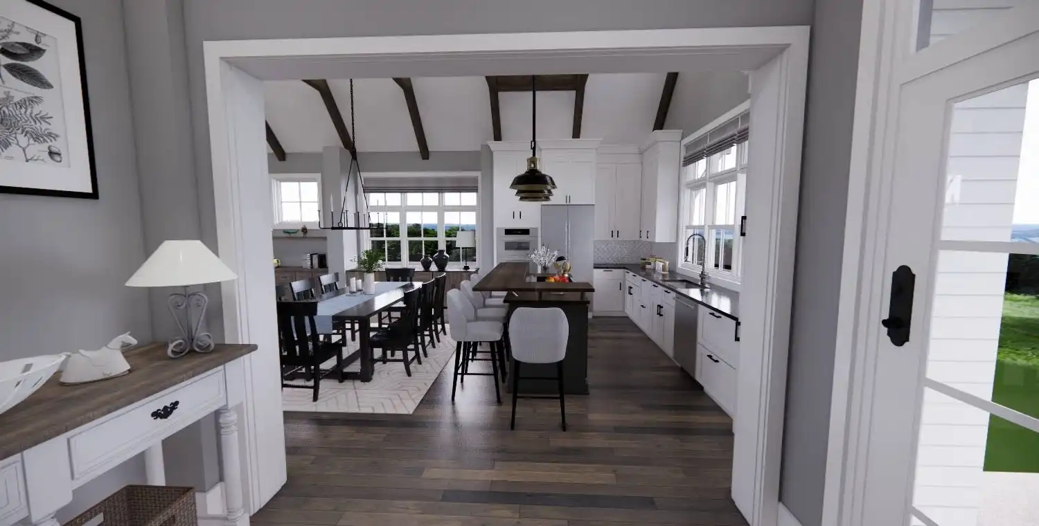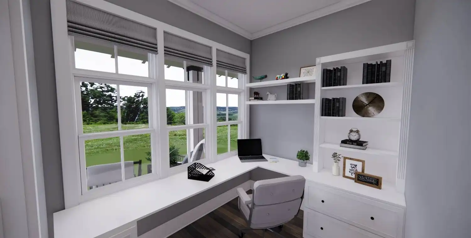 With 2,467 square feet of heated living space, this 3-bedroom, 2.5-bath home is designed for comfortable everyday living. An open floor plan connects the great room, dining area, and kitchen, creating an easy flow for both daily routines and gatherings. The kitchen includes a central island, breakfast nook, and walk-in pantry that add function and convenience. A fireplace anchors the great room and adds warmth to the shared living space. The primary bedroom is located on the main floor and features a sitting area and walk-in closet for a private retreat. A home office and first-floor laundry add practical flexibility, while covered front and rear porches extend the living space outdoors. This welcoming layout balances openness with thoughtful details that make the home feel complete.