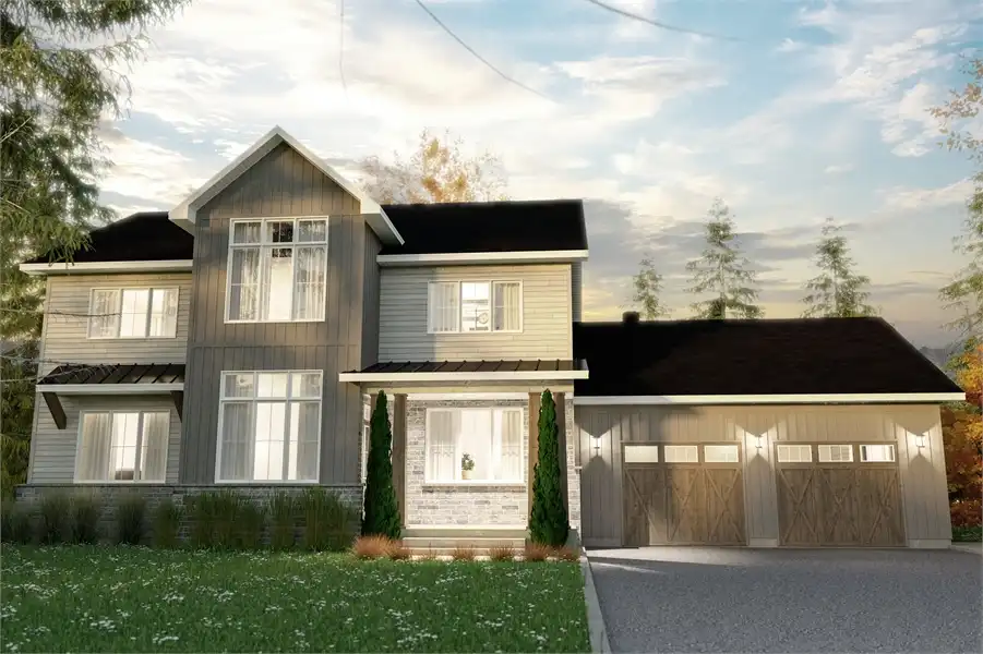 This 2-story country home is perfect for a growing family. With 2,320 square feet, 4 bedrooms and 2.5 bathrooms, there is plenty of room for comfort, while the chic farmhouse style can be found throughout. The mudroom is conveniently accessed via the foyer or 2-car garage. Once inside, you’ll notice that the great room, kitchen with island seating, and dining room share an open living area. A comfortable covered rear porch is great for entertaining, no matter the weather. Upstairs is home to 3 bedrooms that share a bath, and the master, complete with its own en-suite and his and hers walk-in closets. A downstairs laundry is discreet and convenient.