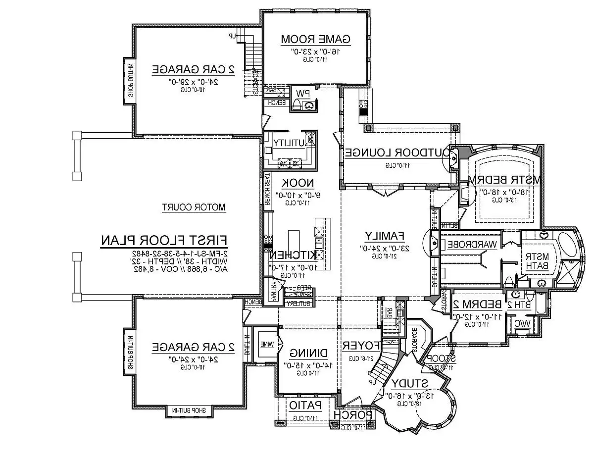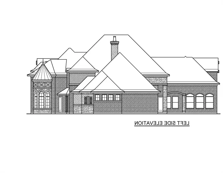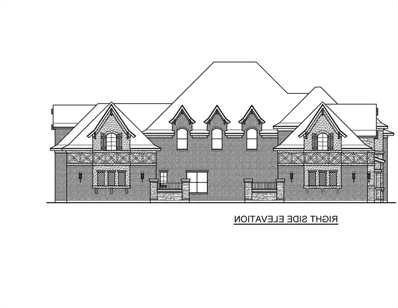 This 7,714 square feet luxury castle house plan welcomes you with a two-story covered entry. Stepping into the foyer, you'll find the study on the left and dining room on your right. Ahead is the two-story family room, chef ready kitchen, with an island, breakfast nook and walk-in pantry. Moving towards the rear of the home, you'll find the game room, with its own bar, that also has access to the nearby powder room and rear garage. You'll also pass by the utility room. The master bedroom is on the left side of the home and includes a walk-in wardrobe, master bath with dual vanity sinks and separate tub/shower. The master bedroom has great views of the backyard and outdoor lounge areas, as well as a fireplace to provide a warm atmosphere on those chilly days and evenings. The main floor also features a second bedroom, complete with its own full bath and walk-in closet. Moving upstairs, you'll find bedrooms 3 and 4, as well as their accompanying full baths, along with a billiard room, lounge, office and media room. Some of these rooms on the second level offer views of the rooms below. This incredible 7,714 square foot castle plan welcomes you with a two-story covered entry. Oh my! Stepping into the foyer, you'll find the study on the left and dining room on your right. Ahead is the two-story family room, chef ready kitchen, with an island, breakfast nook and walk-in pantry. Moving towards the rear of the home, you'll find the game room, with its own bar, that also has access to the nearby powder room and rear garage. You'll also pass by the utility room. The master bedroom is on the left side of the home and includes a walk-in wardrobe, master bath with dual vanity sinks and separate tub/shower. The master bedroom has great views of the backyard and outdoor lounge areas, as well as a fireplace to provide a warm atmosphere on those chilly days and evenings. The main floor also features a second bedroom, complete with its own full bath and walk-in closet. Moving upstairs, you'll find bedrooms 3 and 4, as well as their accompanying full baths, along with a billiard room, lounge, office and media room. Some of these rooms on the second level offer views of the rooms below.