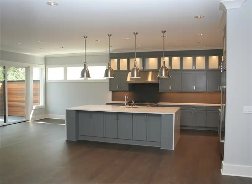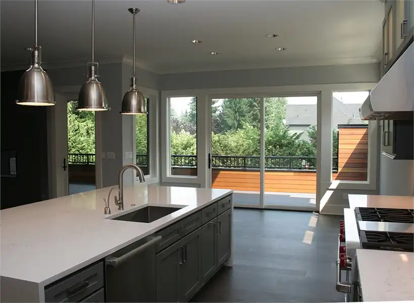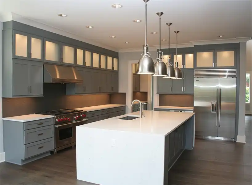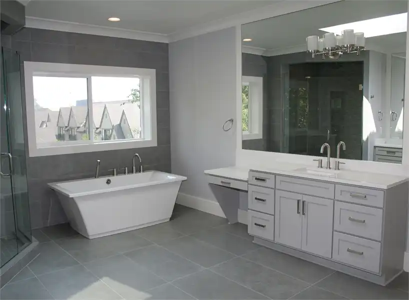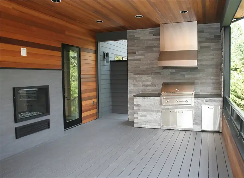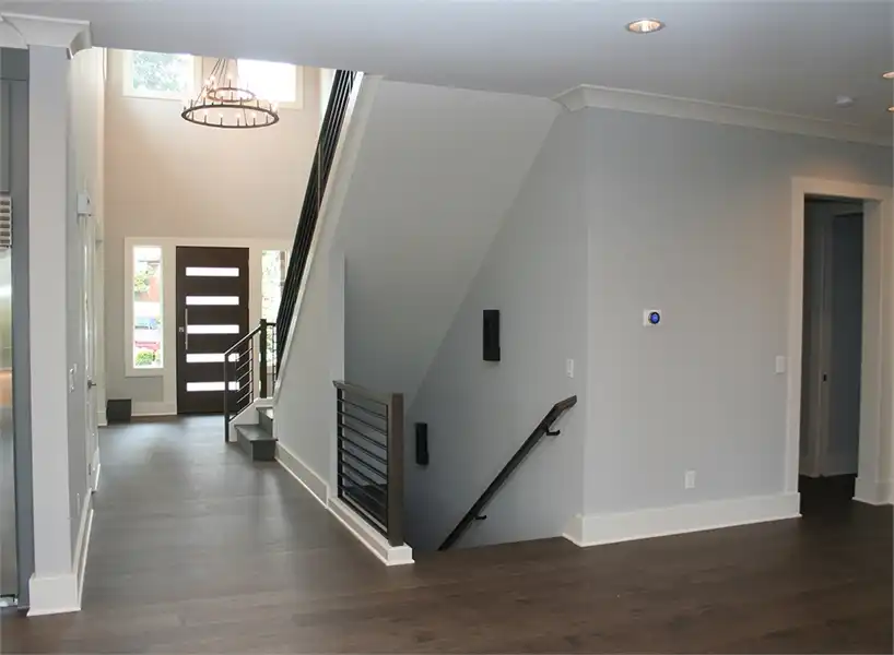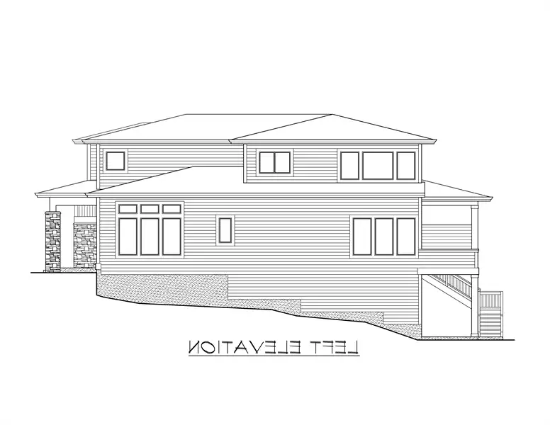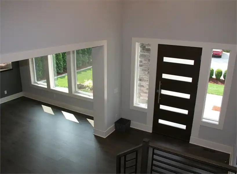 This luxury 3-story contemporary house plan is a great example of combining sleek lines and sharp edges to create an open layout featuring 5 bedrooms and 5.5 bathrooms and 5,369 square feet. Beyond a two-car front entry garage and a welcoming front porch is a large foyer with a formal dining room to your left, complete with a butler’s pantry and large walk-in pantry around the corner. The gourmet kitchen is open to the family room and comfortable dining nook. The nook and family room both open out on to the covered and uncovered back porches. A home office which can double as a bedroom sits off of the family room, along with its own private bathroom. Upstairs finds 2 auxiliary bedrooms, each with their own private bath and walk-in closet, as well as the stunningly large master suite. This home even has a fully finished basement, highlighted by a full guest suite, a media room, and even a rec room. With all of this space, the options and uses seem practically endless.