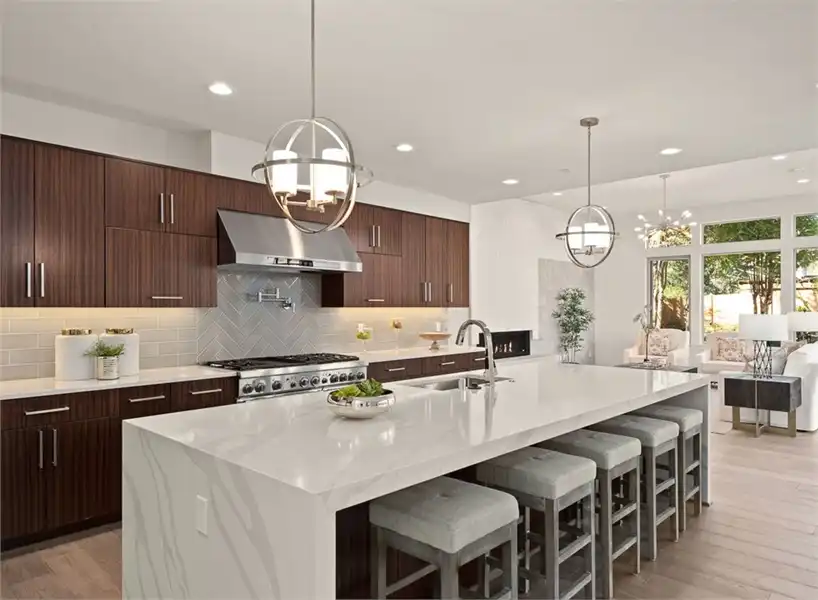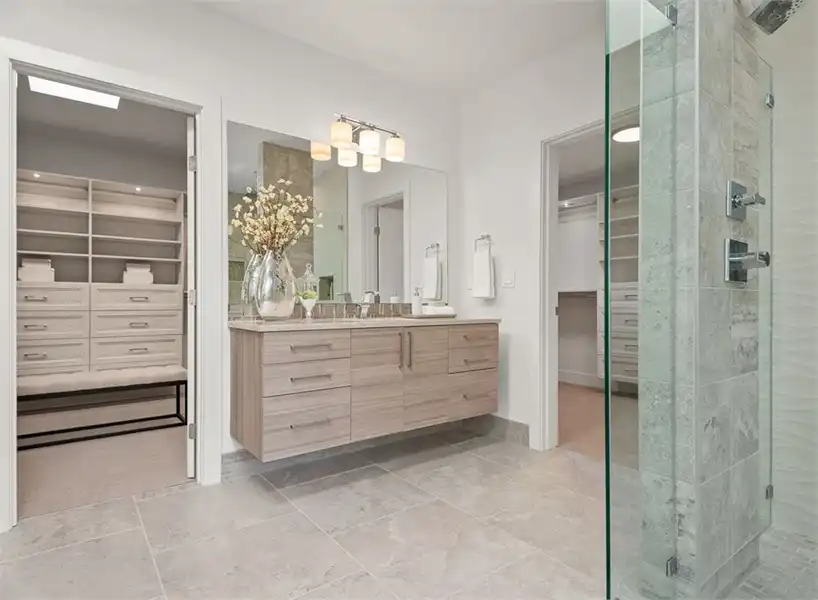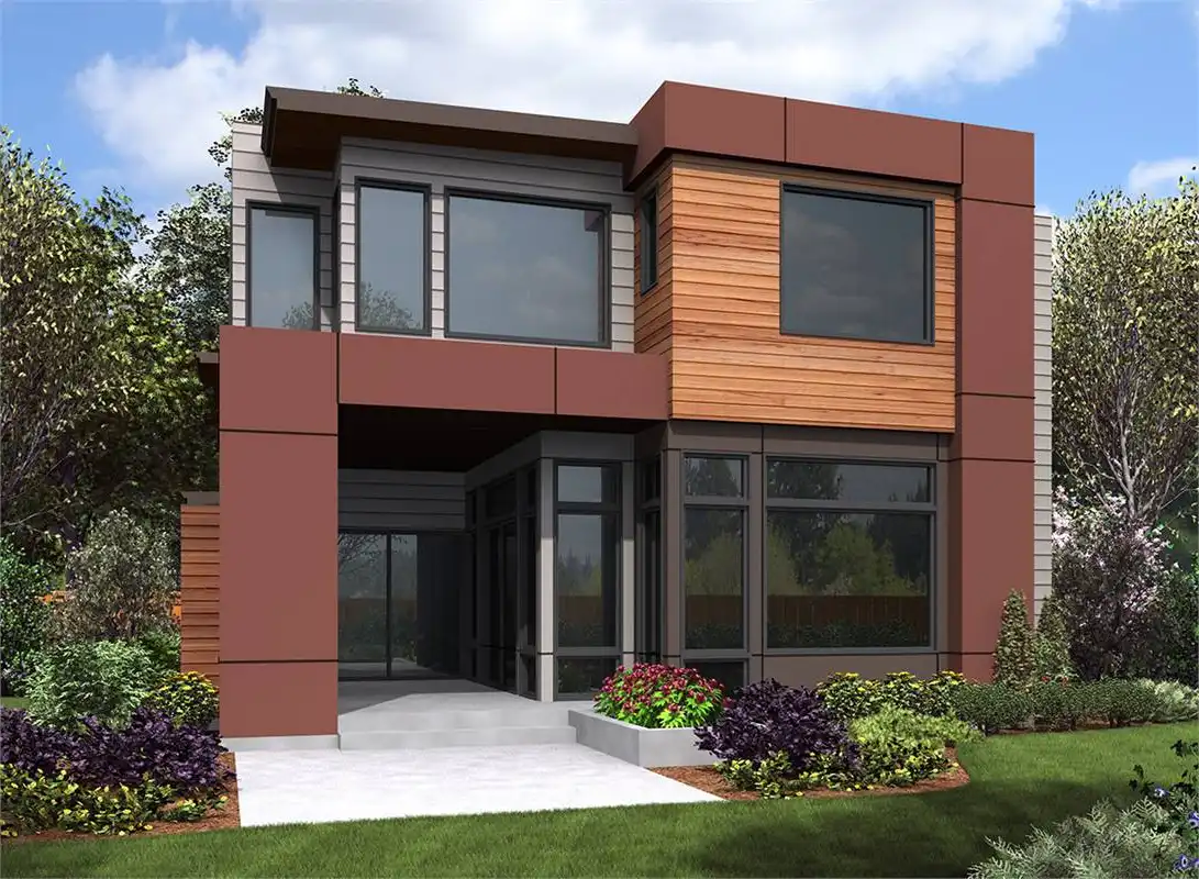 This contemporary 2-story luxury house plan is stunning and spacious featuring 4-bedrooms, 4.5 baths and 4,070 square feet. Its unique design makes this home perfect and adaptable for a narrow lot. Beyond the front door, the foyer opens on to a large, open layout, with a private guest suite nearby. The dining room joins with a fantastic eat-in island kitchen, complete with seating for 4! The large vaulted family room is also attached, with both rooms opening on to the comfortable rear porch and patio. Upstairs you will love the large bedrooms, including 3 auxiliary bedrooms, 1 with its own en-suite, and the other two sharing a jack and Jill bath. As an added bonus, each bedroom has its own walk-in closet, including the master suite which has separate his and hers closets. An upstairs laundry makes for easy chores, while a large bonus room is great for a game or rec room, or even an extra bedroom. With all of this space, you’ll never feel cramped in your home again.