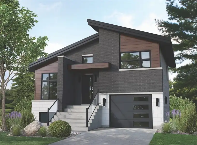 Sleek modern two-story house plan with 2 bedrooms and 1.5 bath in a is a great build for virtually any sized lot with a 32’ x 32’ footprint and 1,112 square foot plan. The first level houses a deep single-car garage, alongside an open concept that finds the kitchen, living room, and dining room sharing a flexible space. Upstairs you’ll find 2 bedrooms and a shared full bath. If the second bedroom isn’t needed, consider making it into an office or hobby room, maximizing the use of this great home.