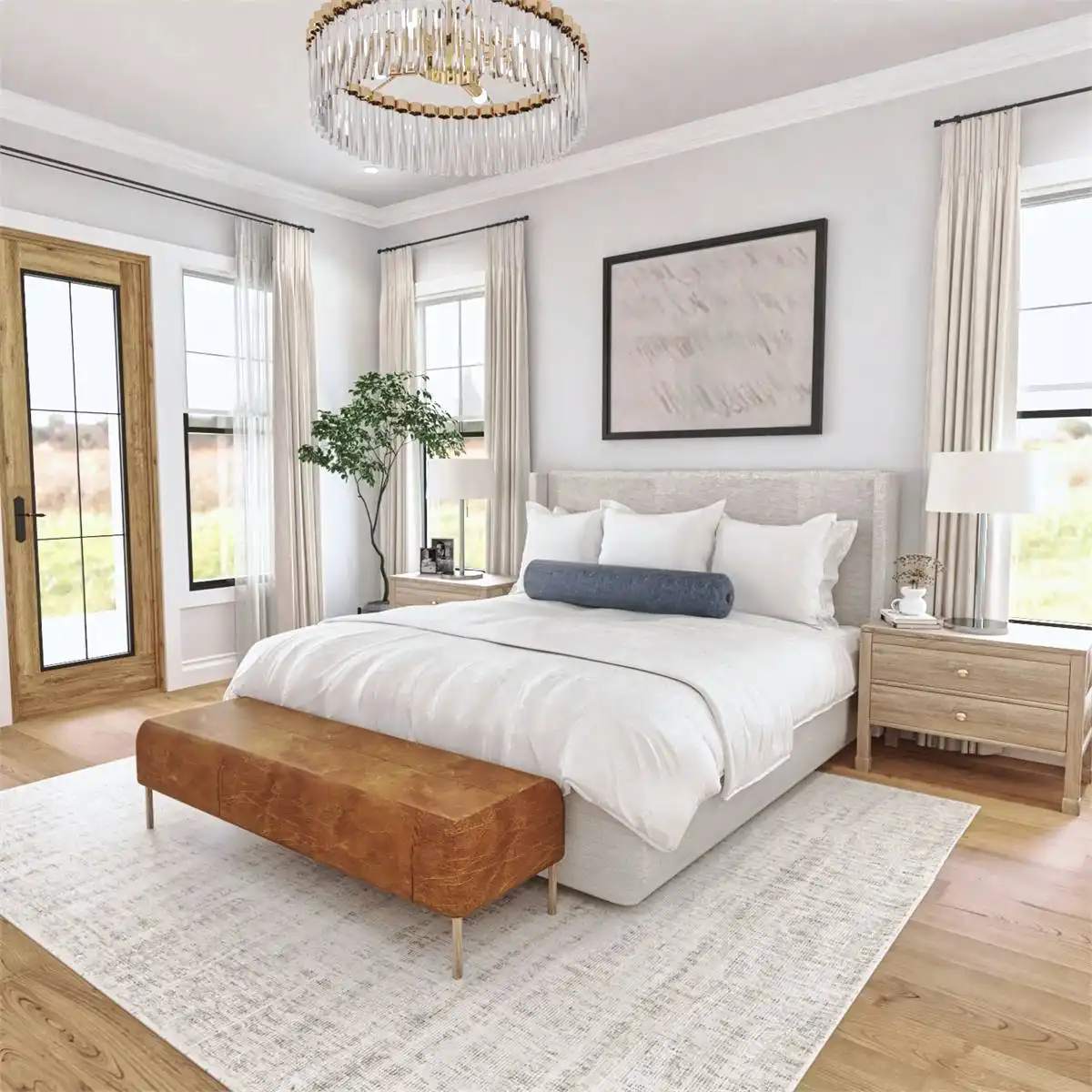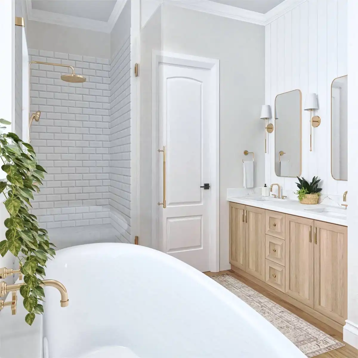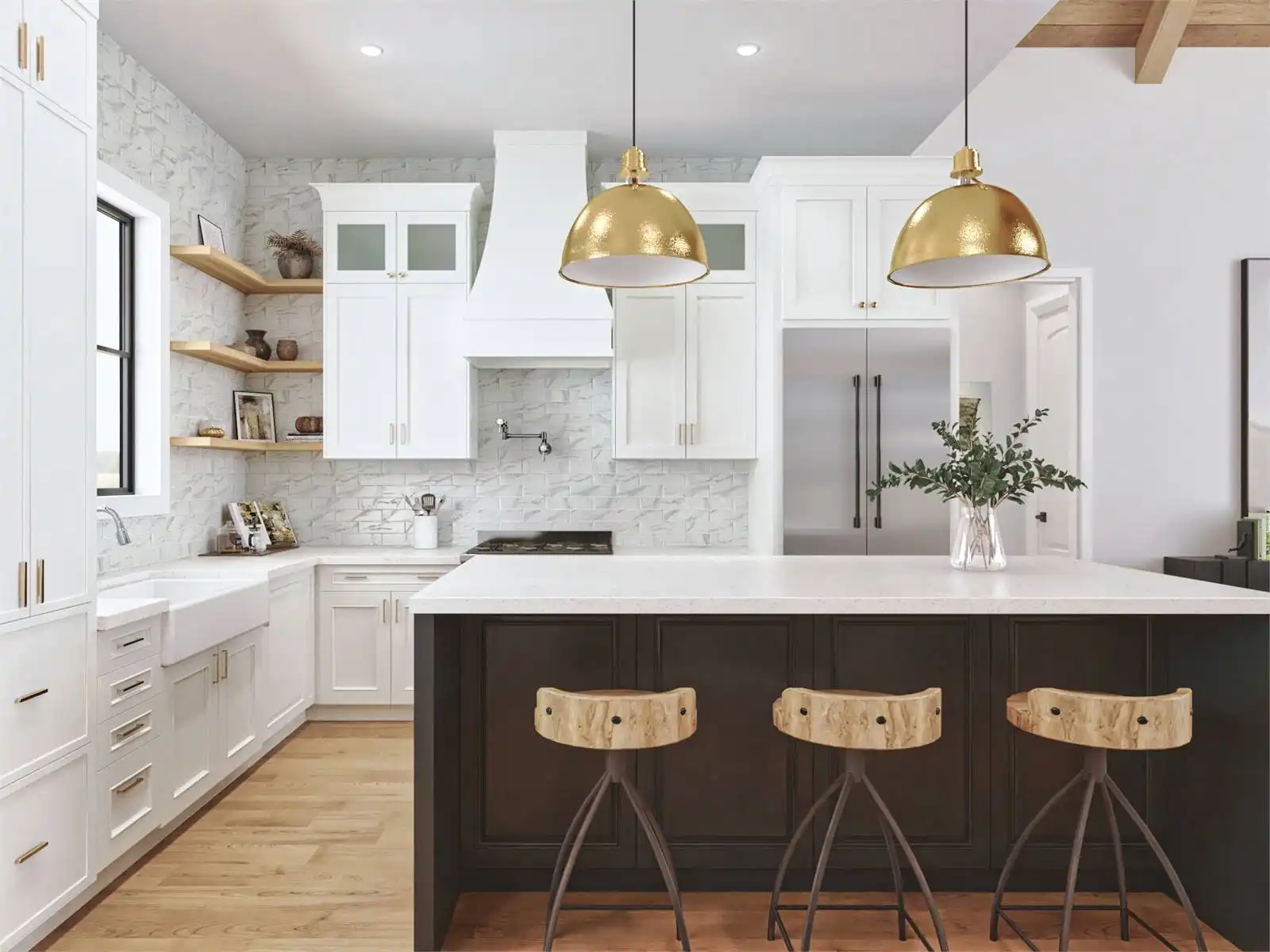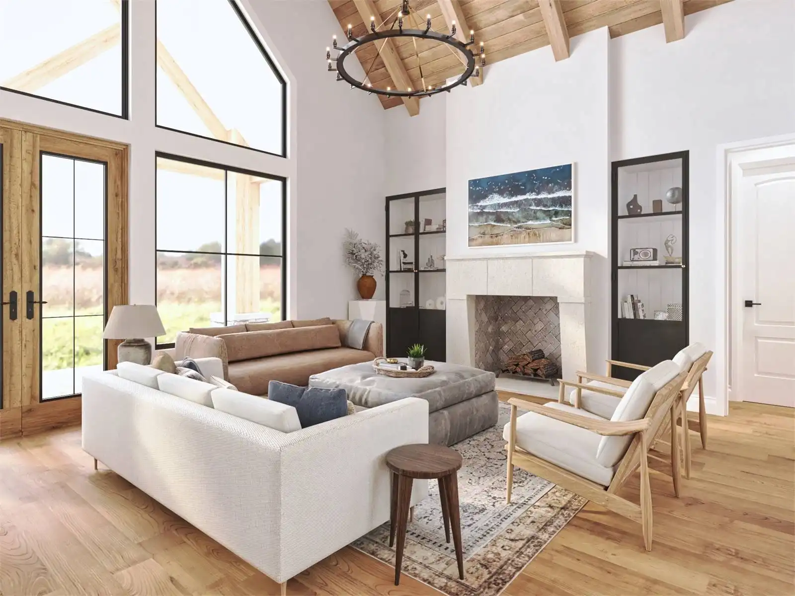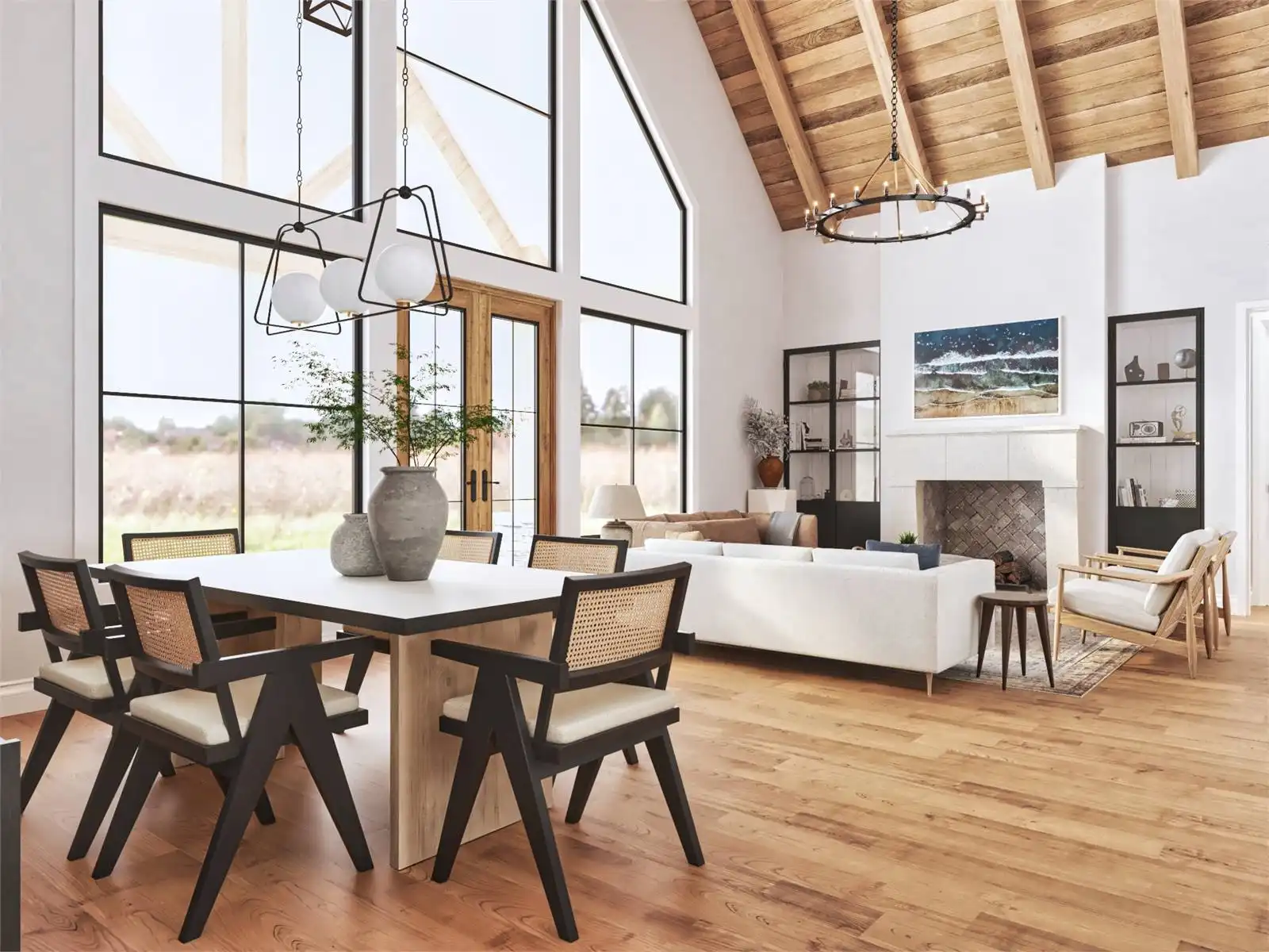 Step into an alluring 1,849 square foot modern farmhouse that seamlessly combines style with the tranquility of country living. Upon entering, discover an elegant L-shaped kitchen to the right, complete with a spacious island and ample counter space. Progressing forward, the Great Room awaits with its vaulted ceilings, allowing natural light to fill the space through floor-to-ceiling windows. On the right side of the home, two bedrooms share a full bathroom, boasting separate double vanity sinks. To the left, the owner's suite provides a private sanctuary with a large walk-in closet and an ensuite bathroom. This retreat extends outdoors with access to a covered porch spanning the entire rear of the home, offering an ideal space for outdoor living. Adding practicality, a detached garage stands ready for two vehicles.