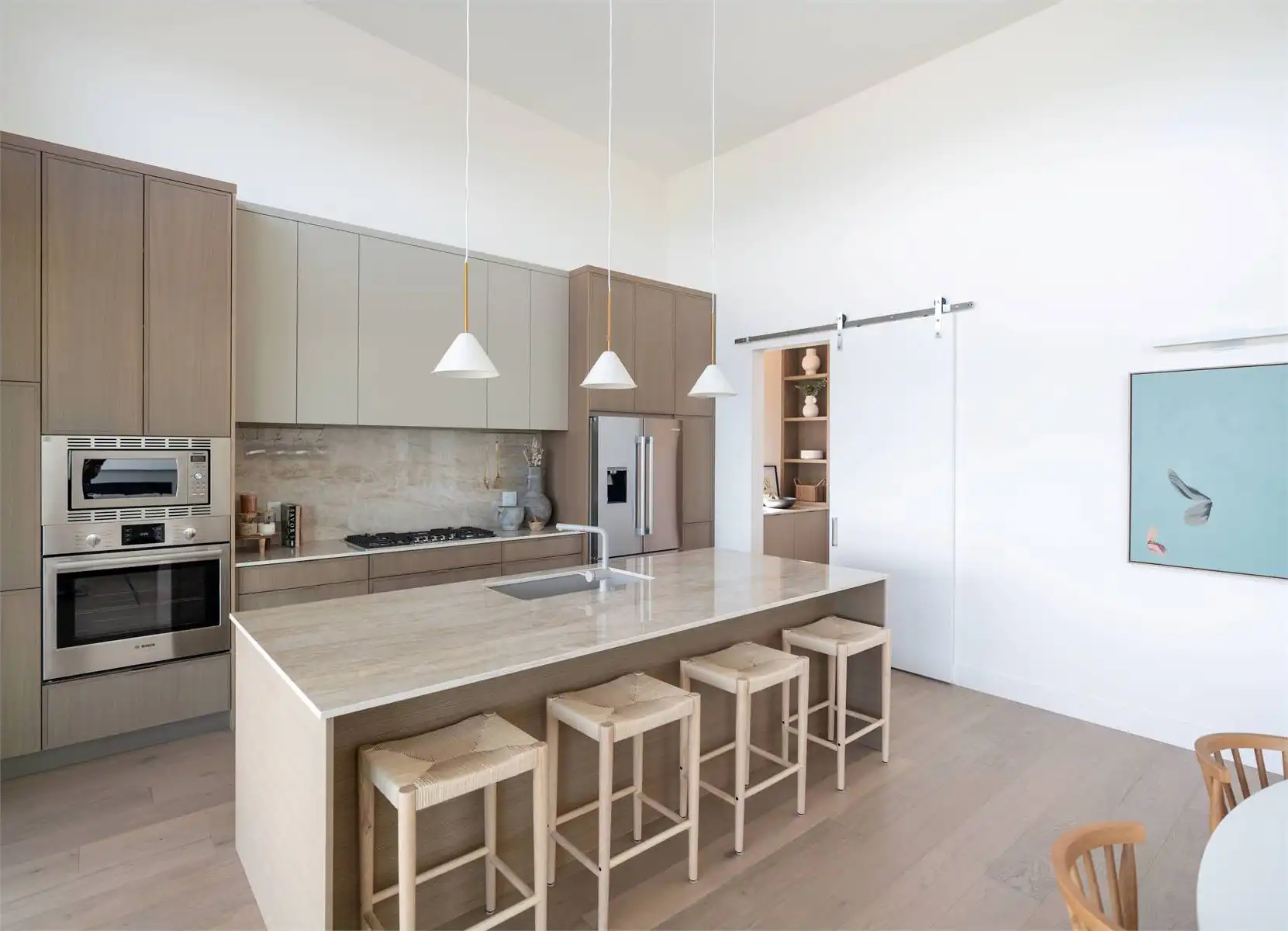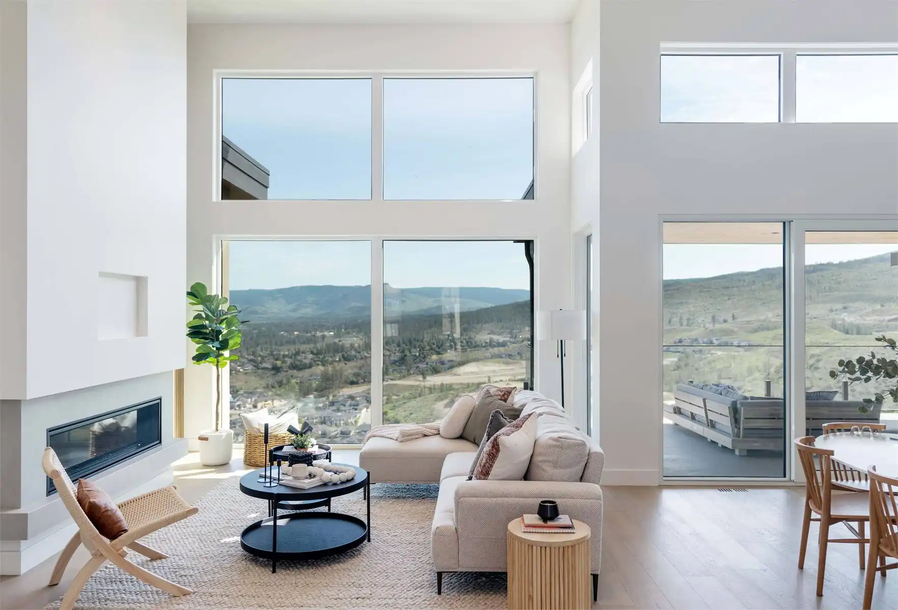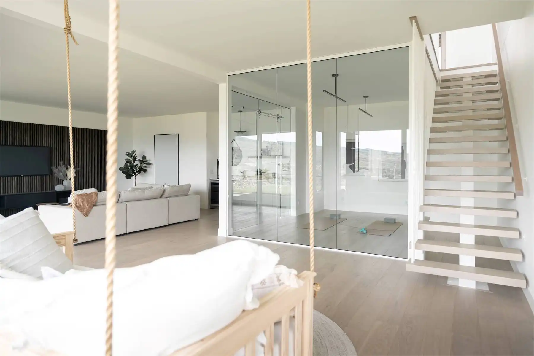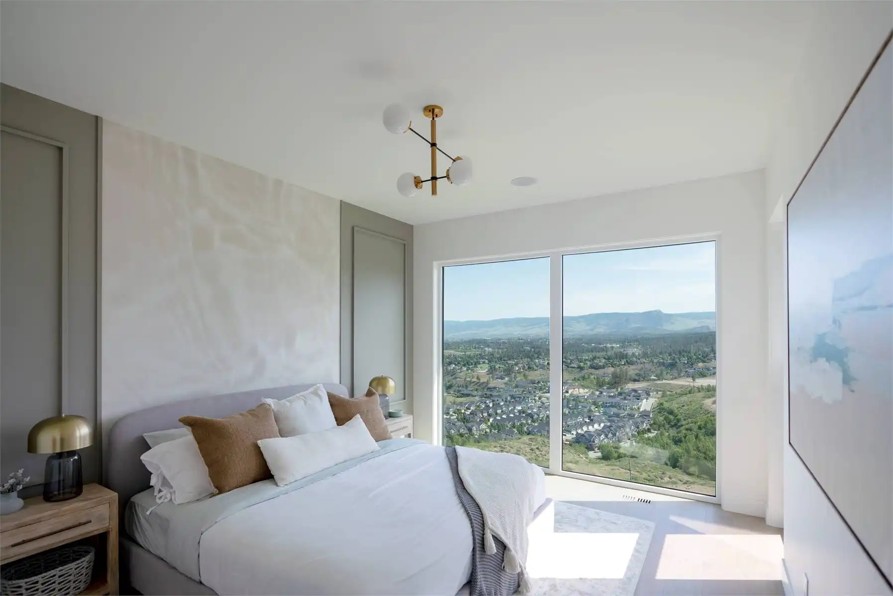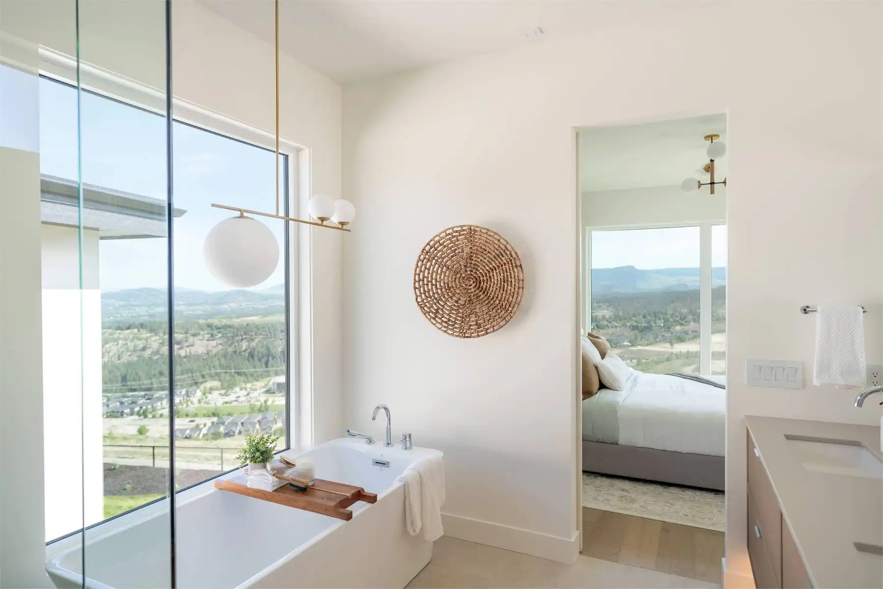 Step into a stunning 3,430 square foot modern masterpiece where every detail is a testament to refined living. The journey begins as floor-to-ceiling windows grace the vaulted ceiling foyer, ushering in natural light that illuminates the elegant interior. To the right, a versatile den awaits, offering potential as an at-home office. The open floor plan unfolds seamlessly, revealing a bright and spacious living room designed for entertaining. The adjacent dining room flows into the meticulously crafted kitchen, boasting a large walk-in pantry and a magnificent island with an eating bar. Access the expansive covered deck from this space, extending the living area into the outdoors. The owner's bedroom, a private sanctuary on the main floor, boasts a generously sized spa-like bathroom with a separate tub and shower. Descend the stairs to discover two additional bedrooms and an abundance of recreational space, providing the perfect canvas for an at-home gym, theater, or games area.