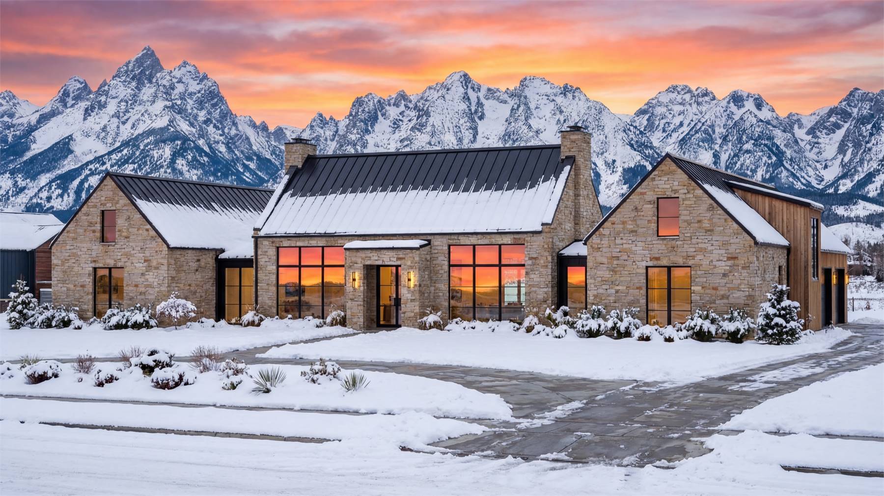 Discover House Plan 7716, a modern ranch that harmoniously blends contemporary design with rustic charm. This spacious home features 3,782 square feet of living space, including four bedrooms with walk-in closets and four and a half baths. The open-concept main living area boasts a vaulted ceiling and large windows, creating a bright, airy atmosphere. The split bedroom layout ensures guest privacy with a full ensuite. The primary suite includes private porch access and a luxurious ensuite. Outdoors, a vast rear-wrapping porch invites entertaining, and a bonus room above the three-car garage adds versatility, making House Plan 7716 ideal for modern living with farmhouse charm.