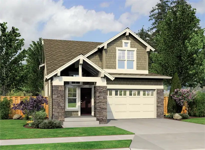 With a rustic yet traditional facade that has a story to tell, this timeless Craftsman home offers an impressive amount of space and features. With 2,587 square feet, the 4 bedroom 2-story design is both cozy and all-inclusive. And thanks to a narrow footprint, the plan is perfect for lots of all shapes and sizes. The main floor begins with a 2-car garage and the nearby foyer. From there you'll discover a stunning island kitchen with plenty of storage and a walk-in pantry. There is even an attached dining room for easy entertaining. And then it's time to move into the great room before discovering the private master suite with its dual closets and spa-inspired bath. Finally, head upstairs to reveal the auxiliary bedrooms along with a bonus room and an open air loft that can be finished off into a home office or extra bedroom if you'd like!