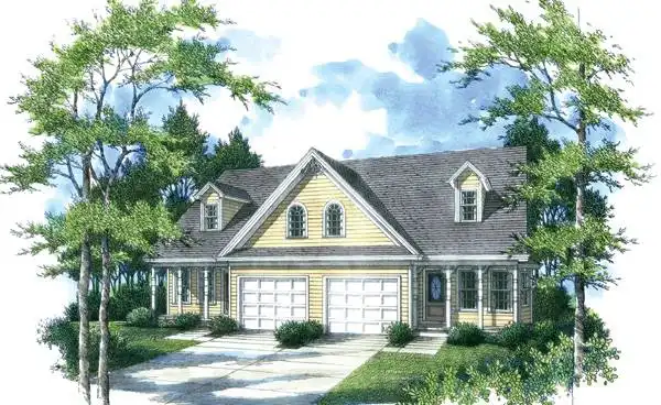Each side is identical to the other and includes a single garage and private front porch per unit. The central room includes a bay window to extend the dining space. Two bedrooms are to the rear with plenty of closet space and laundry facilities nearby.