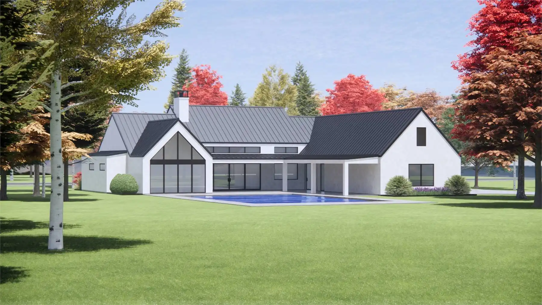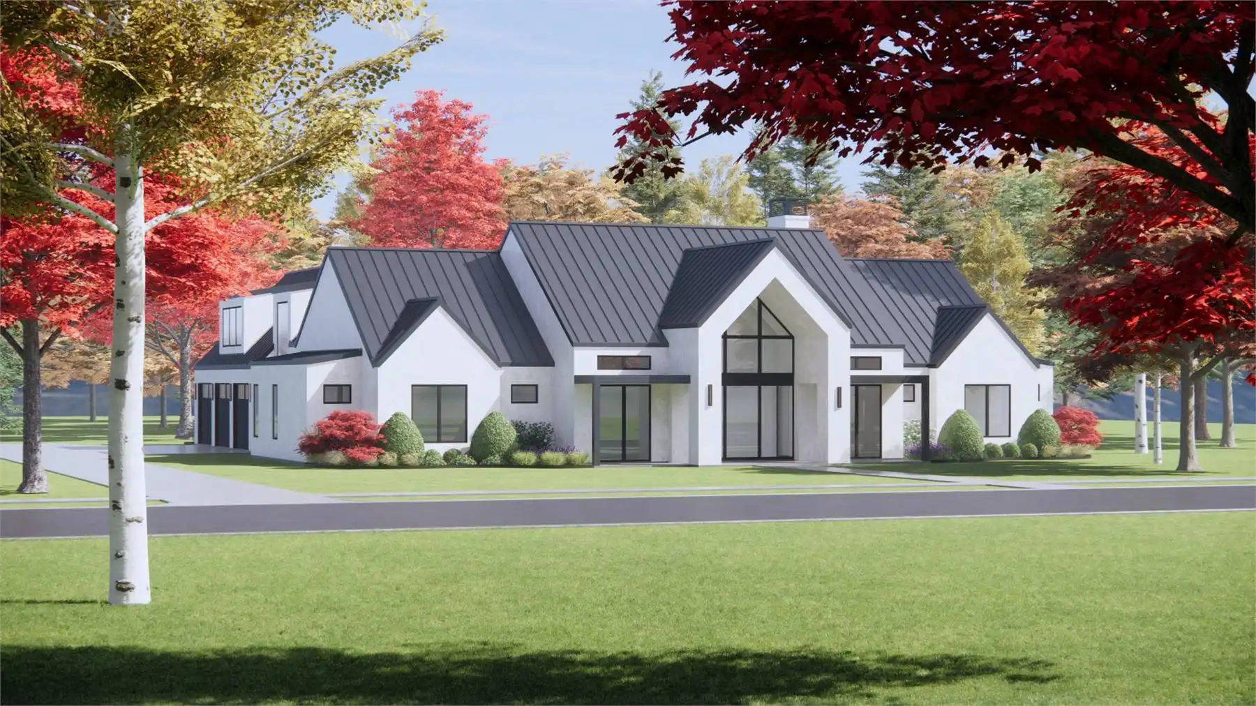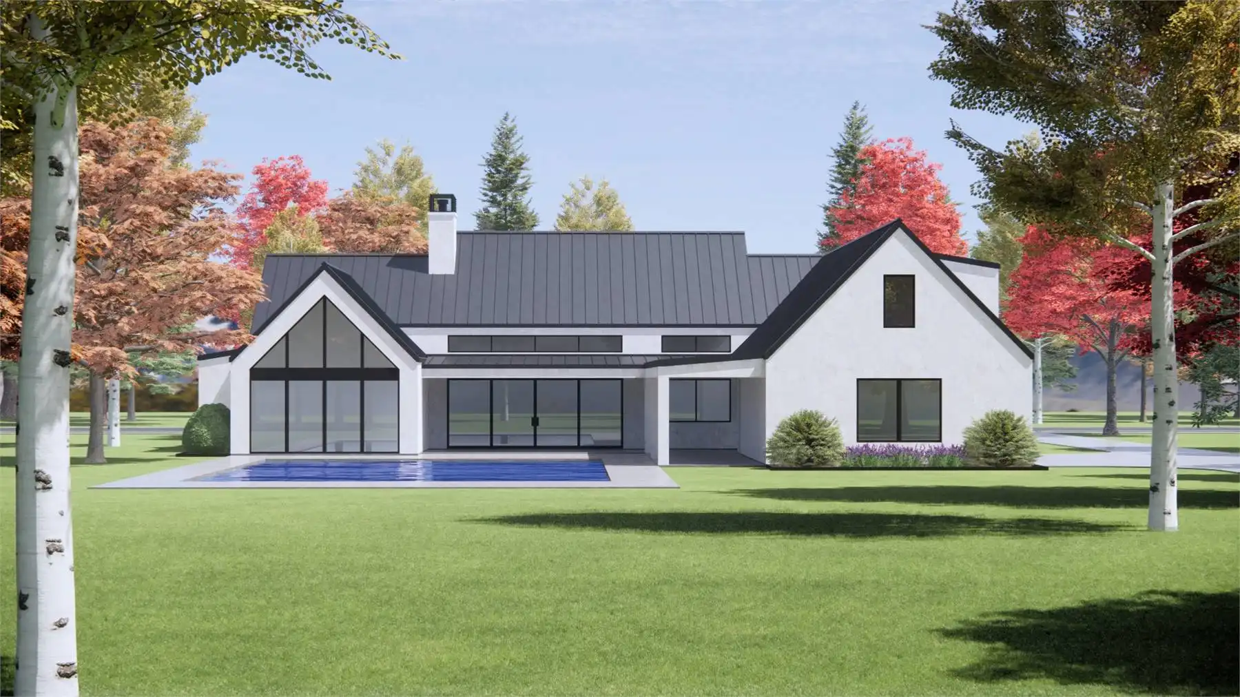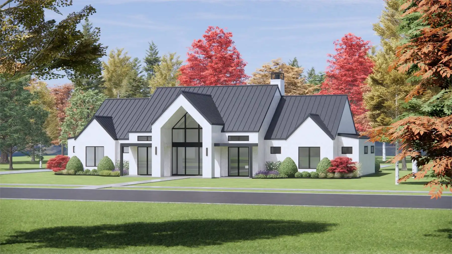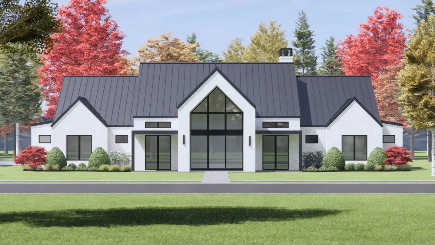 With its bold contemporary farm curb appeal, House Plan 7790 is sure to stand out on the street! And with 3,641 square feet to enjoy, your whole family will love living in this beautiful home. It offers a vaulted great room that includes the island kitchen and living space, while the dining room is separate for some formal definition. There's also an office off the vaulted foyer for the at-home worker. Four bedroom suites are split across this. The primary suite has a vaulted bedroom and a spacious five-piece bath while the other suites feature smaller three-piece baths, but everybody gets a walk-in closet. Other highlights of this home include the large back porch and the bonus over the three-car garage!
