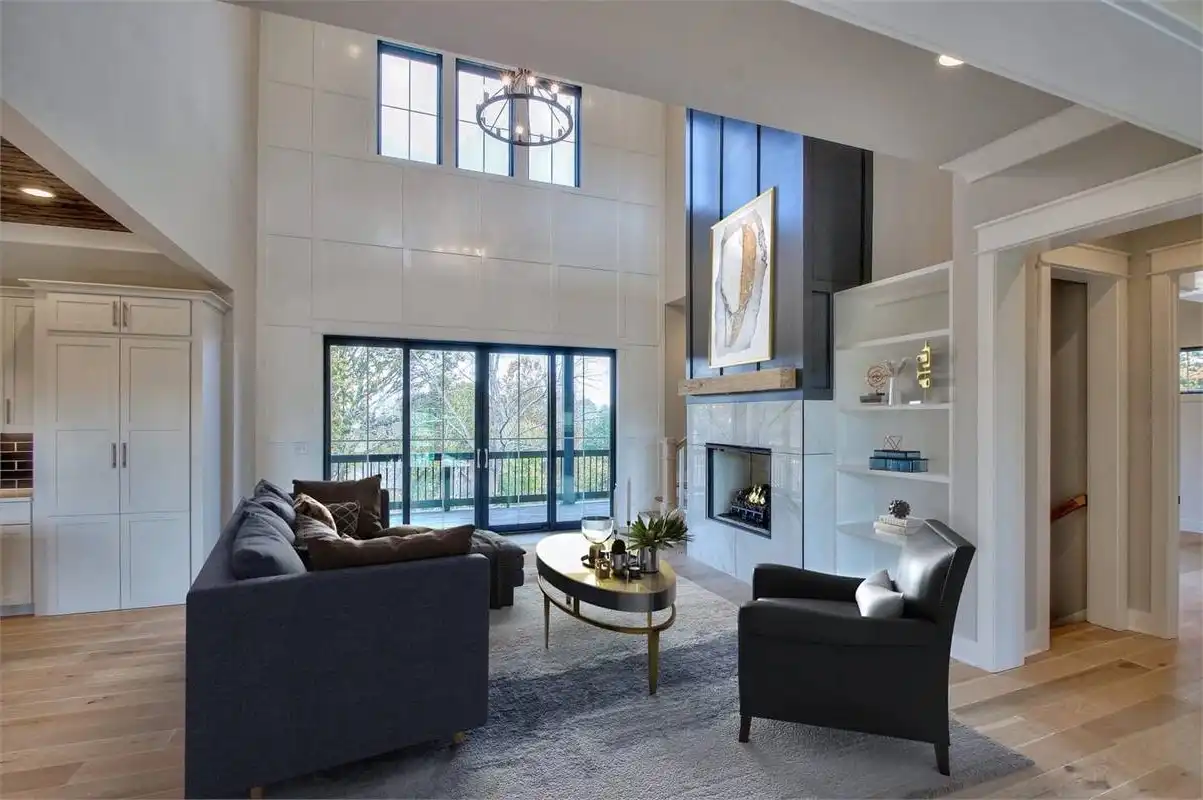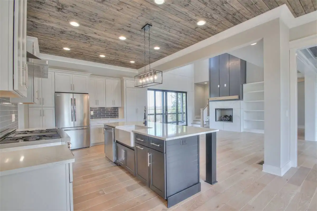 From the welcoming wrap-around covered front porch, guests will enter the 2913 square foot home directly into the impressive great room that has 2 story ceilings, tons of natural light through the full wall of sliding glass doors, and is anchored by a fireplace. The large covered back porch increases the living space for mild weathered summer nights or mornings with the perfect cup of coffee.